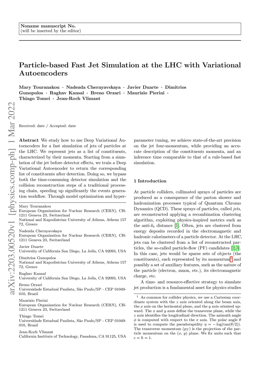 Particle-based Fast Jet Simulation at the LHC with Variational