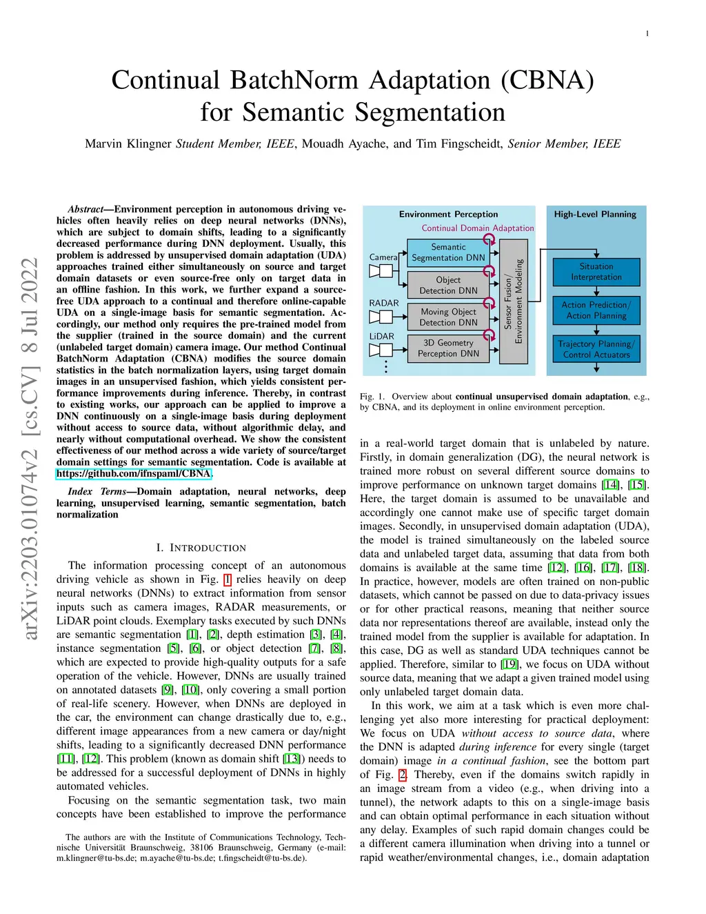 Continual BatchNorm Adaptation (CBNA) for Semantic Segmentation