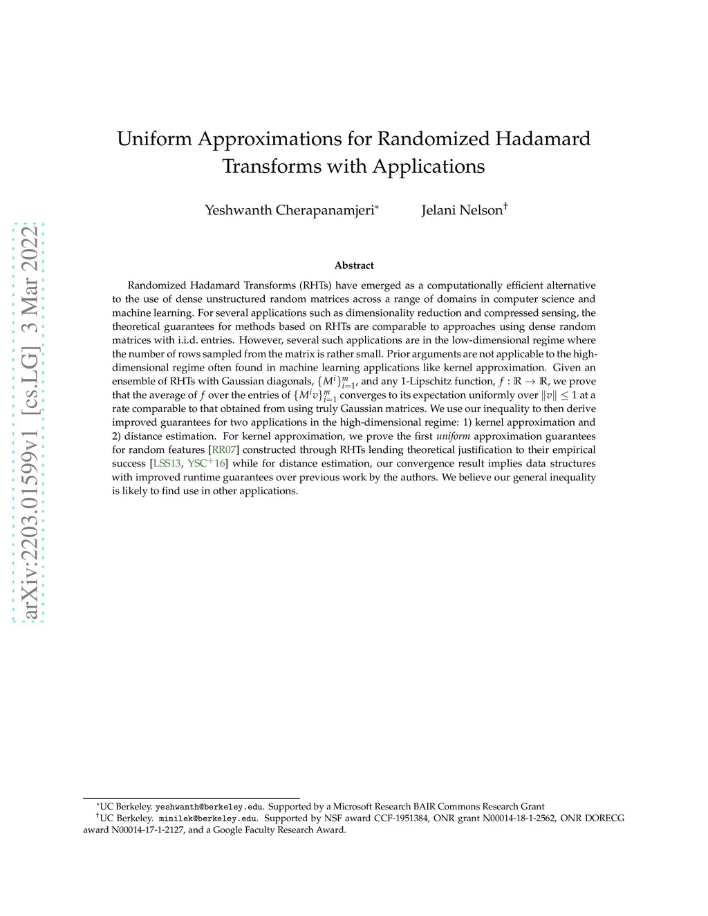 Uniform Approximations for Randomized Hadamard Transforms with