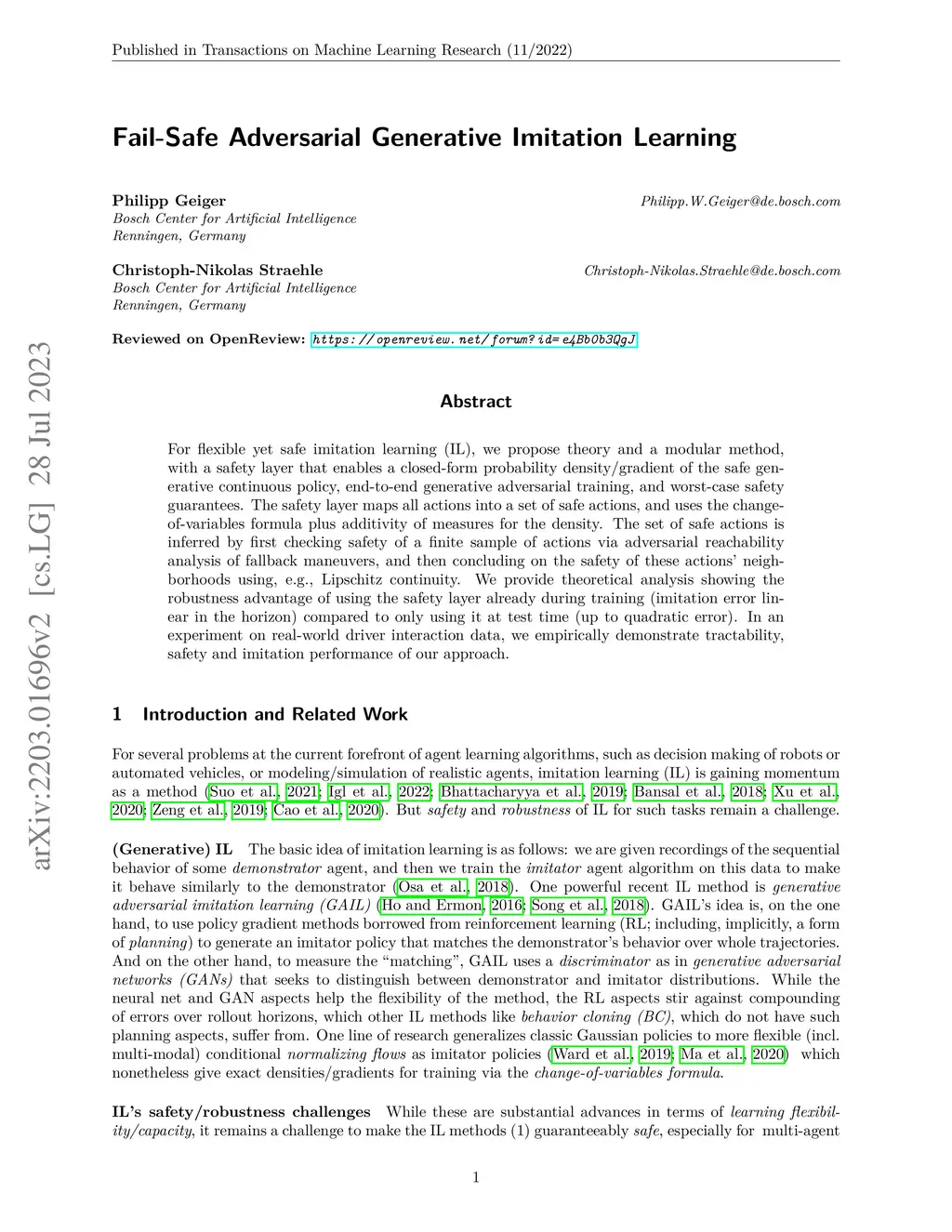 Fail-Safe Adversarial Generative Imitation Learning