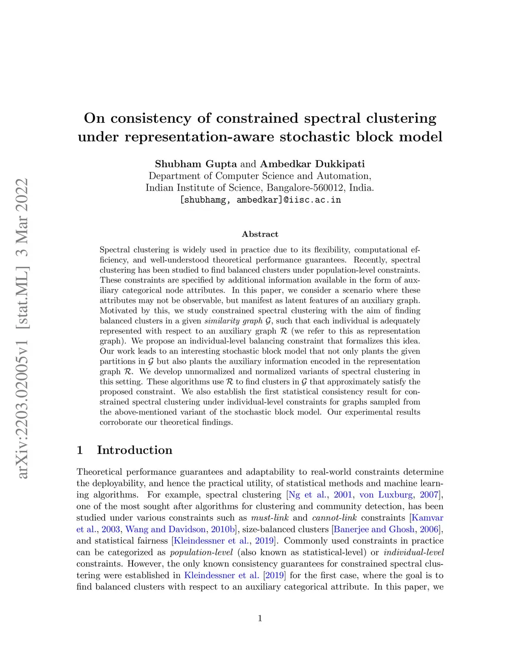Spectral clustering is widely used in practice due to its flexibility, computational efficiency, and well-understood theoretical performance guarantees. Recently, spectral clustering has been studied to find balanced clusters under population-level constraints. These constraints are specified by additional information available in the form of auxiliary categorical node attributes. In this paper, we consider a scenario where these attributes may not be observable, but manifest as latent features of an auxiliary graph. Motivated by this, we study constrained spectral clustering with the aim of finding balanced clusters in a given \textit{similarity graph} , such that each individual is adequately represented with respect to an auxiliary graph (we refer to this as representation graph). We propose an individual-level balancing constraint that formalizes this idea. Our work leads to an interesting stochastic block model that not only plants the given partitions in but also plants the auxiliary information encoded in the representation graph . We develop unnormalized and normalized variants of spectral clustering in this setting. These algorithms use to find clusters in that approximately satisfy the proposed constraint. We also establish the first statistical consistency result for constrained spectral clustering under individual-level constraints for graphs sampled from the above-mentioned variant of the stochastic block model. Our experimental results corroborate our theoretical findings.
