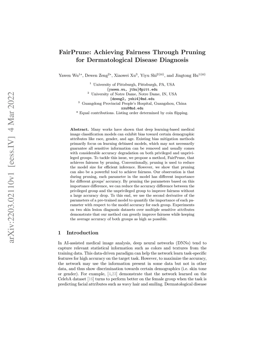 FairPrune: Achieving Fairness Through Pruning for Dermatological Disease