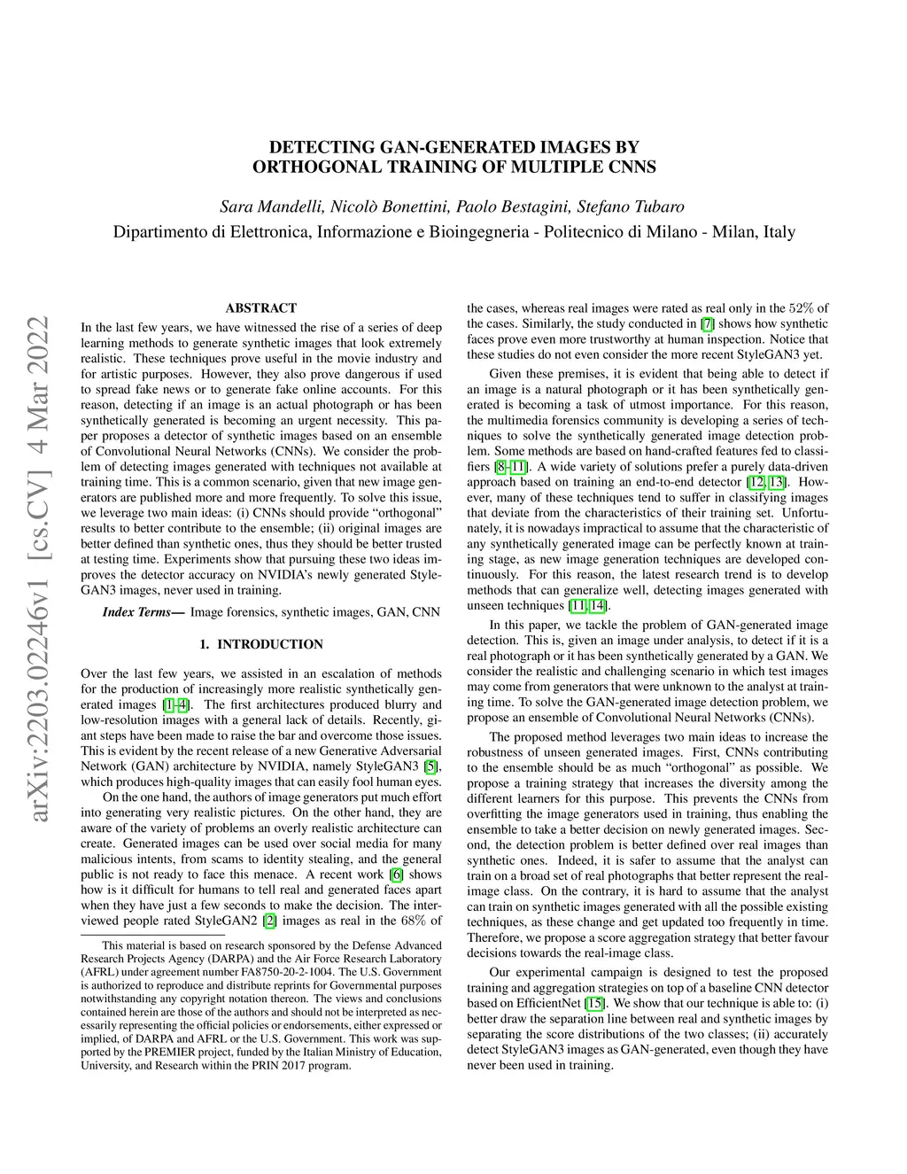 Detecting GAN-generated Images by Orthogonal Training of Multiple CNNs
