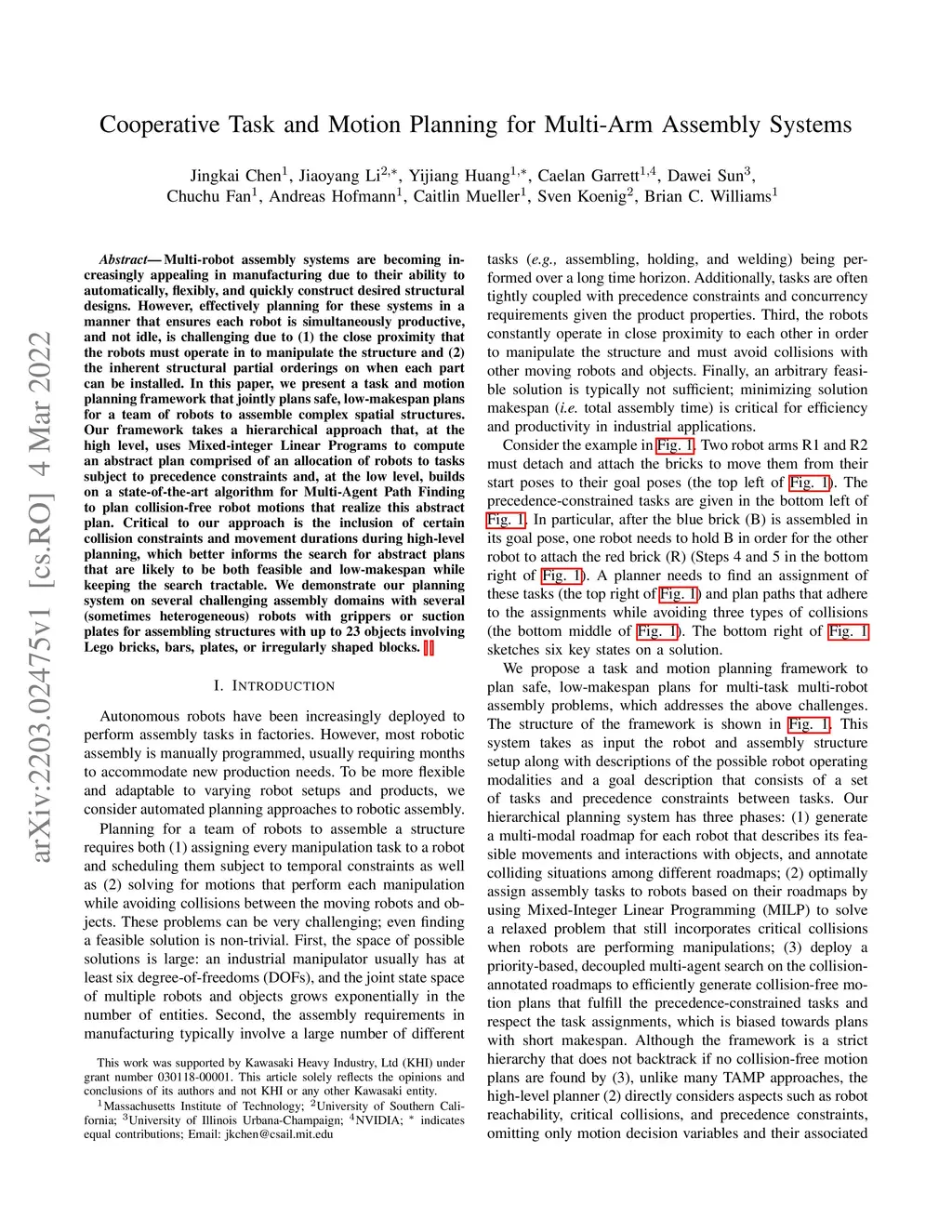 Cooperative Task and Motion Planning for Multi-Arm Assembly Systems