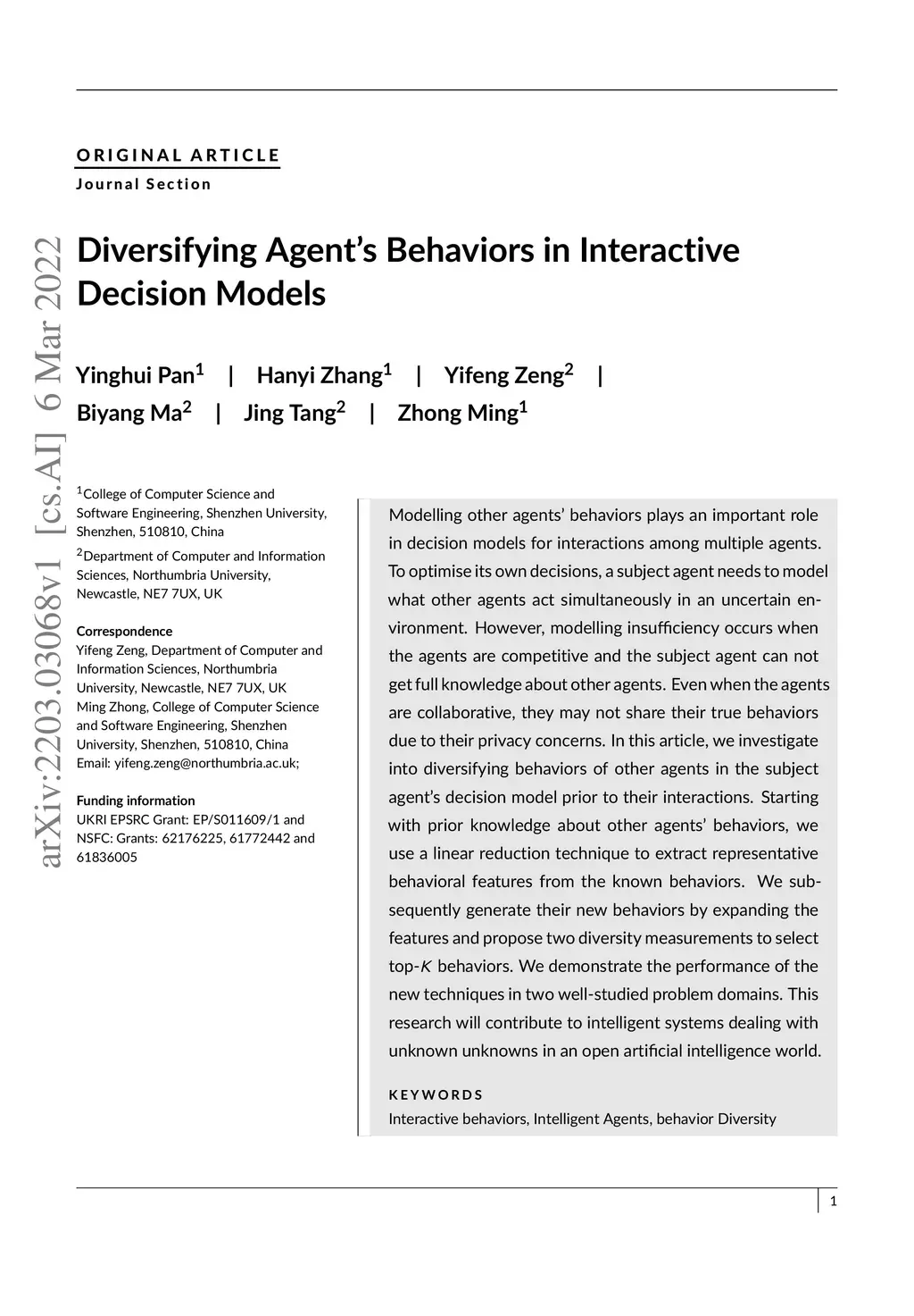 Diversifying Agent's Behaviors in Interactive Decision Models