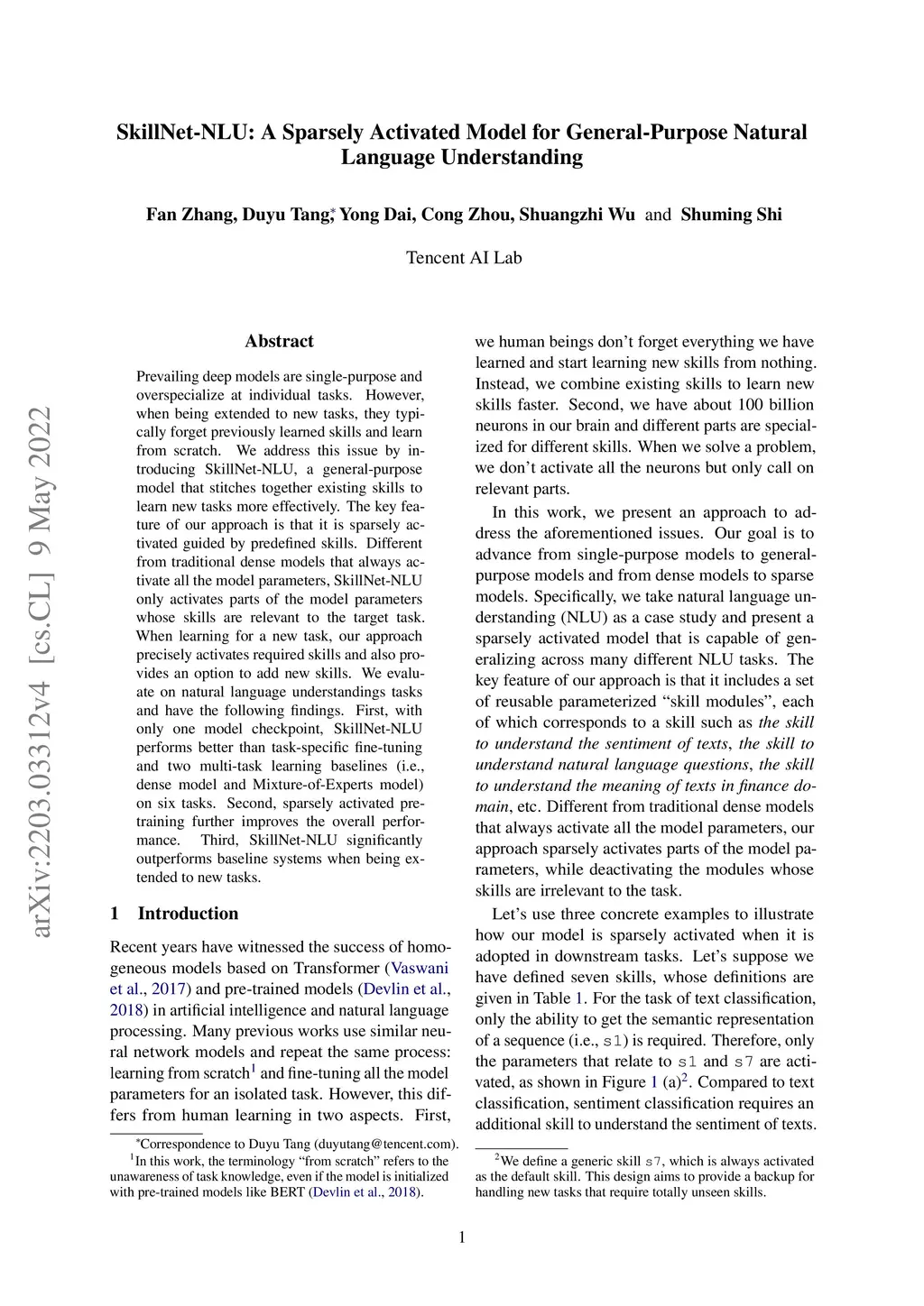 SkillNet-NLU: A Sparsely Activated Model for General-Purpose Natural