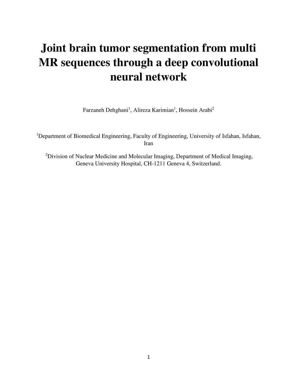 Joint brain tumor segmentation from multi MR sequences through a deep