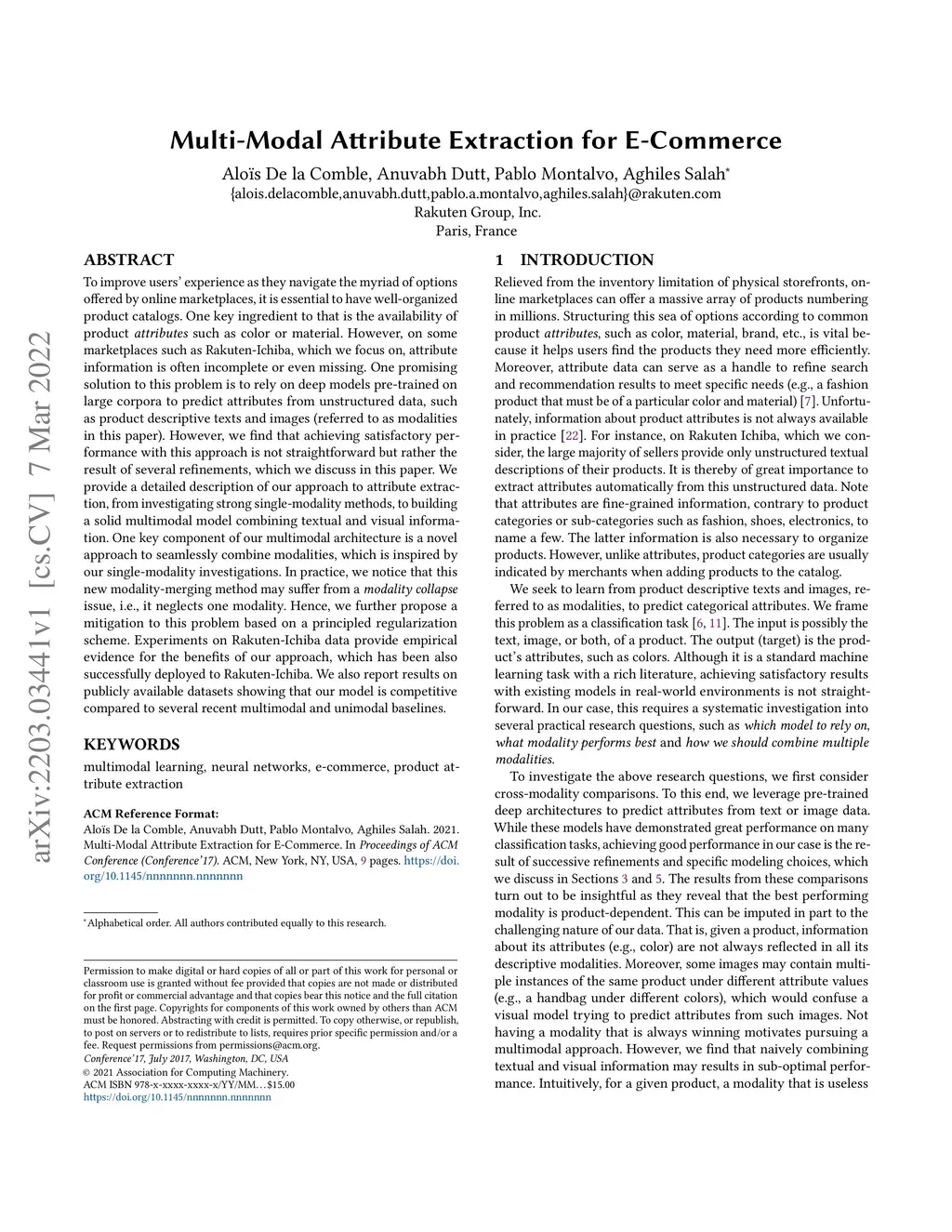 To improve users' experience as they navigate the myriad of options offered by online marketplaces, it is essential to have well-organized product catalogs. One key ingredient to that is the availability of product attributes such as color or material. However, on some marketplaces such as Rakuten-Ichiba, which we focus on, attribute information is often incomplete or even missing. One promising solution to this problem is to rely on deep models pre-trained on large corpora to predict attributes from unstructured data, such as product descriptive texts and images (referred to as modalities in this paper). However, we find that achieving satisfactory performance with this approach is not straightforward but rather the result of several refinements, which we discuss in this paper. We provide a detailed description of our approach to attribute extraction, from investigating strong single-modality methods, to building a solid multimodal model combining textual and visual information. One key component of our multimodal architecture is a novel approach to seamlessly combine modalities, which is inspired by our single-modality investigations. In practice, we notice that this new modality-merging method may suffer from a modality collapse issue, i.e., it neglects one modality. Hence, we further propose a mitigation to this problem based on a principled regularization scheme. Experiments on Rakuten-Ichiba data provide empirical evidence for the benefits of our approach, which has been also successfully deployed to Rakuten-Ichiba. We also report results on publicly available datasets showing that our model is competitive compared to several recent multimodal and unimodal baselines.