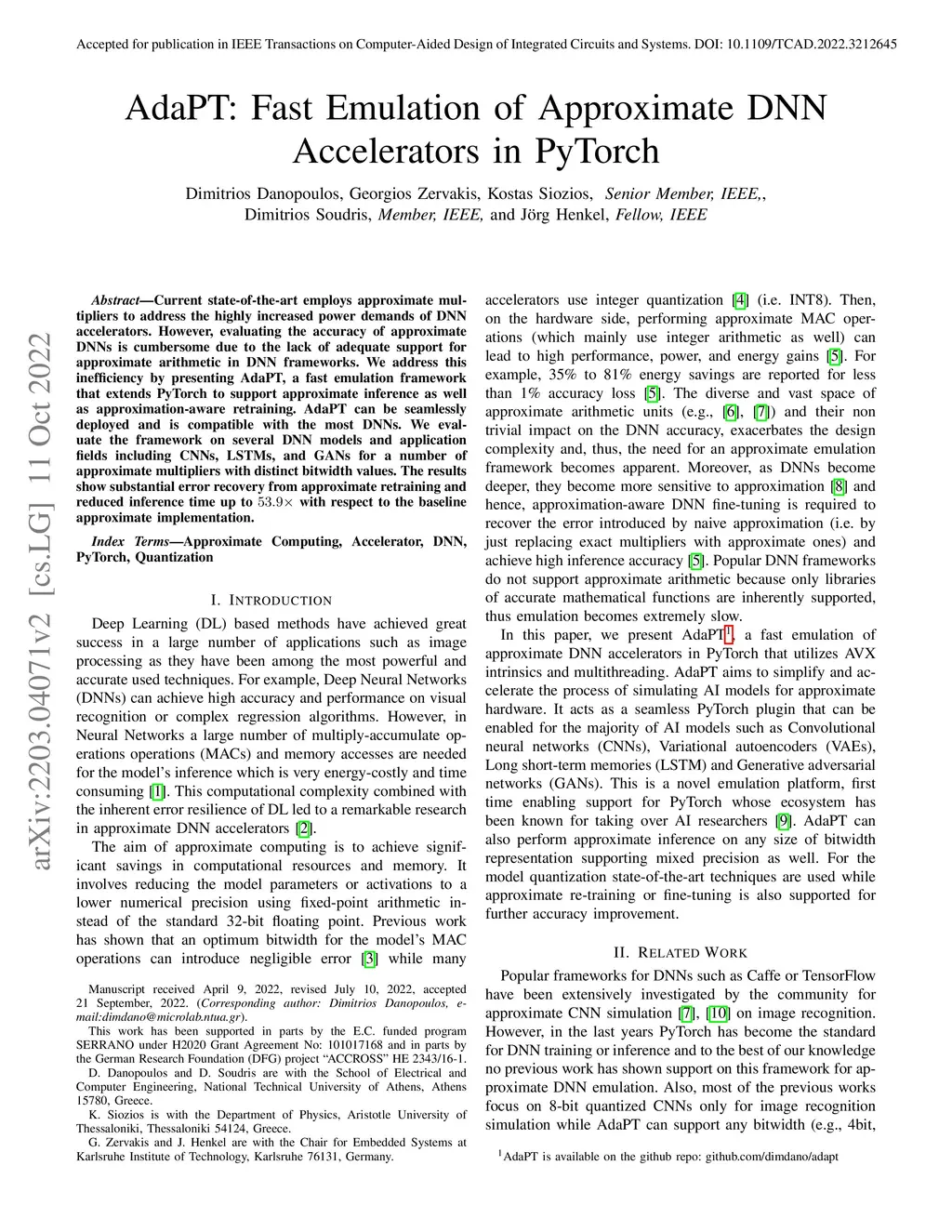 AdaPT: Fast Emulation of Approximate DNN Accelerators in PyTorch