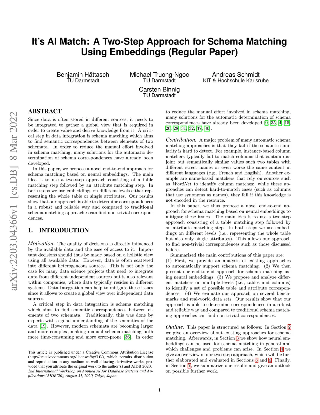 It's AI Match: A Two-Step Approach for Schema Matching Using Embeddings