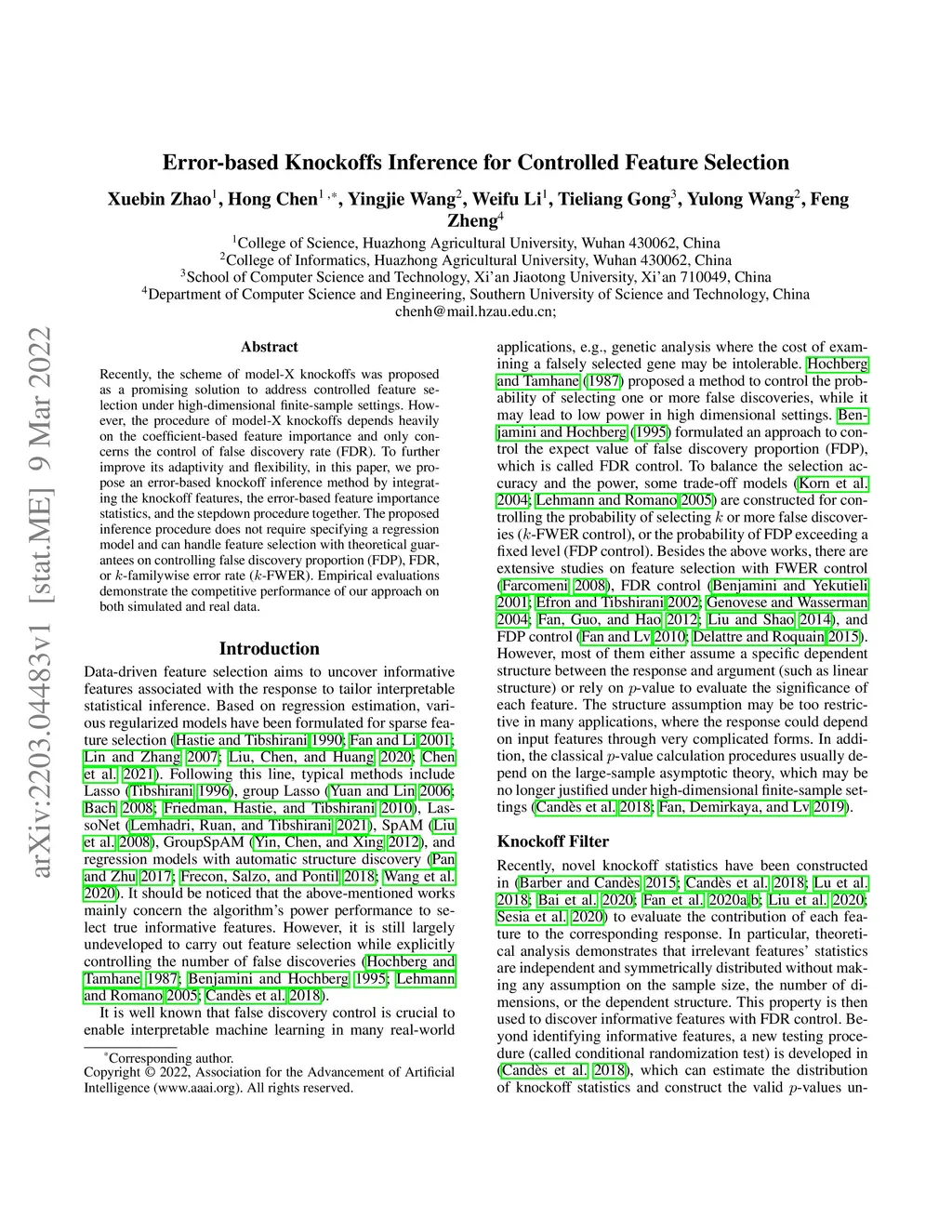 Error-based Knockoffs Inference for Controlled Feature Selection