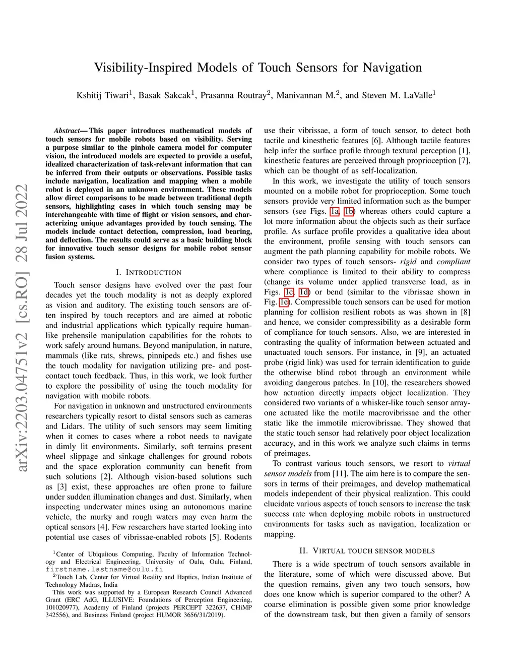 Visibility-Inspired Models of Touch Sensors for Navigation
