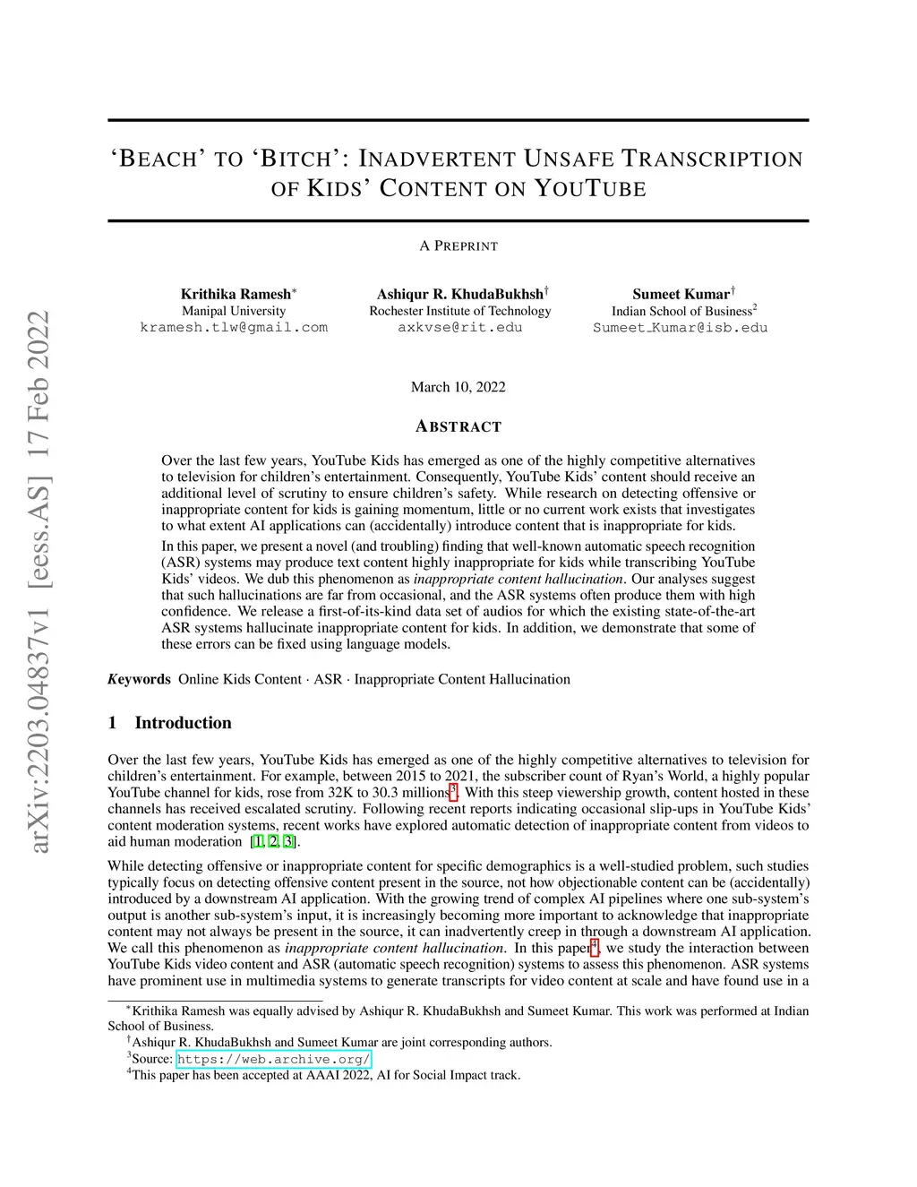 'Beach' to 'Bitch': Inadvertent Unsafe Transcription of Kids' Content on