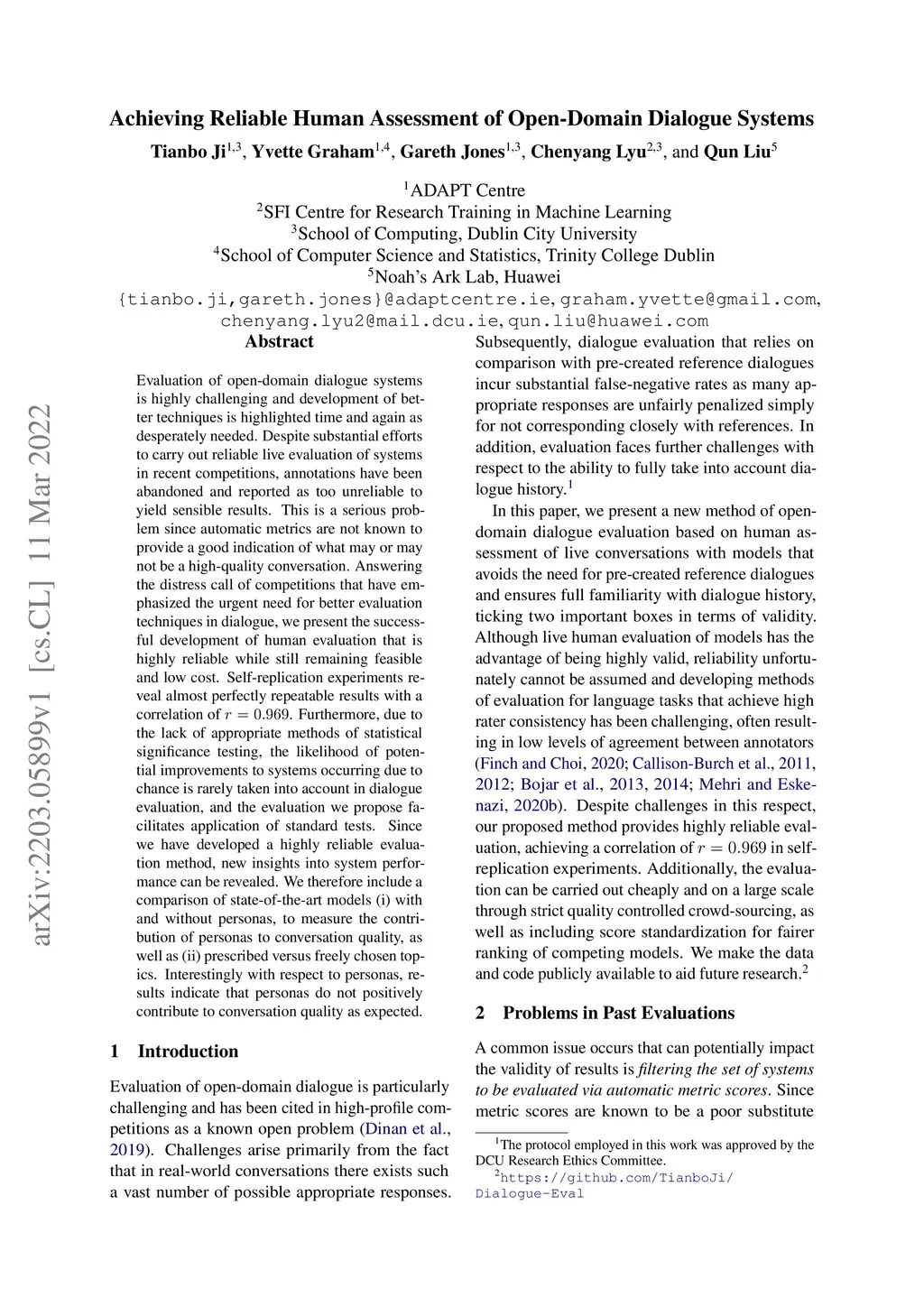 Achieving Reliable Human Assessment of Open-Domain Dialogue Systems