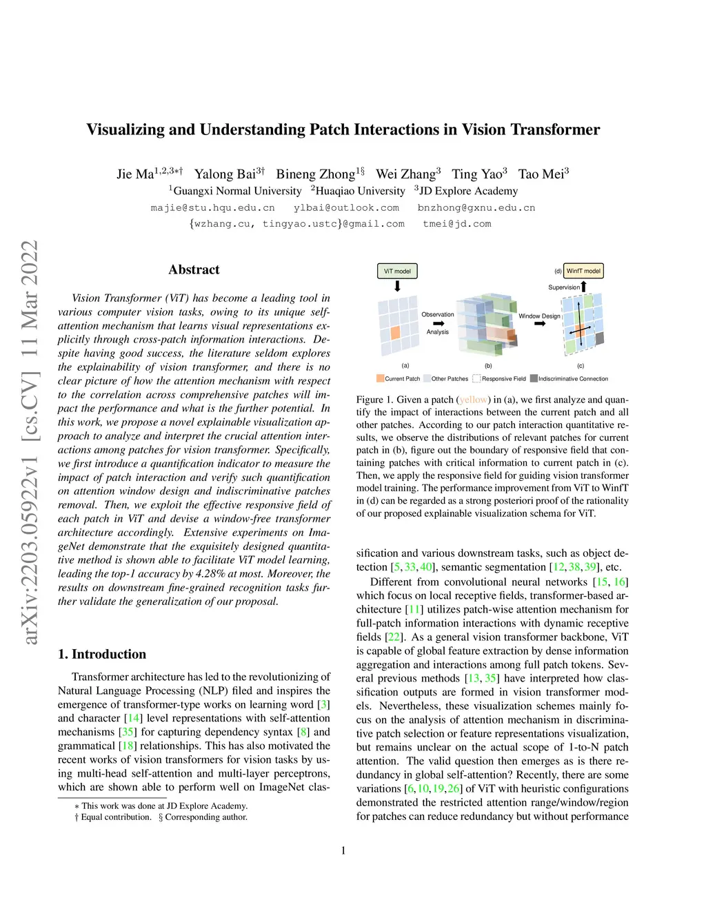 Vision Transformer (ViT) has become a leading tool in various computer vision tasks, owing to its unique self-attention mechanism that learns visual representations explicitly through cross-patch information interactions. Despite having good success, the literature seldom explores the explainability of vision transformer, and there is no clear picture of how the attention mechanism with respect to the correlation across comprehensive patches will impact the performance and what is the further potential. In this work, we propose a novel explainable visualization approach to analyze and interpret the crucial attention interactions among patches for vision transformer. Specifically, we first introduce a quantification indicator to measure the impact of patch interaction and verify such quantification on attention window design and indiscriminative patches removal. Then, we exploit the effective responsive field of each patch in ViT and devise a window-free transformer architecture accordingly. Extensive experiments on ImageNet demonstrate that the exquisitely designed quantitative method is shown able to facilitate ViT model learning, leading the top-1 accuracy by 4.28% at most. Moreover, the results on downstream fine-grained recognition tasks further validate the generalization of our proposal.