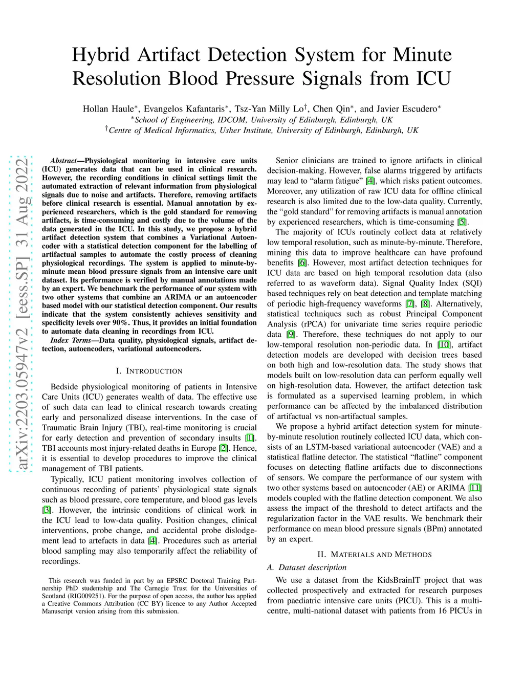 Hybrid Artifact Detection System for Minute Resolution Blood Pressure