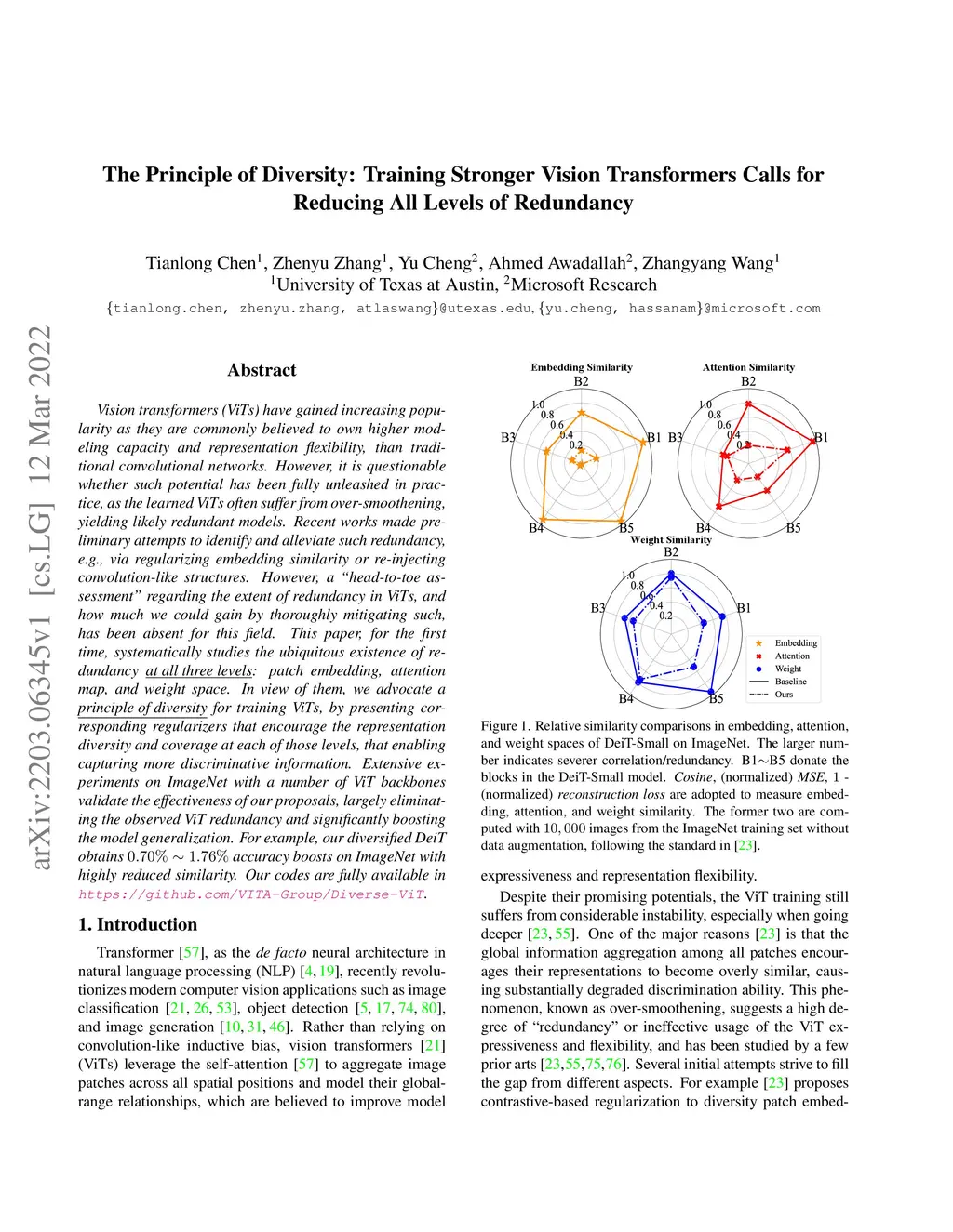 The Principle of Diversity: Training Stronger Vision Transformers Calls