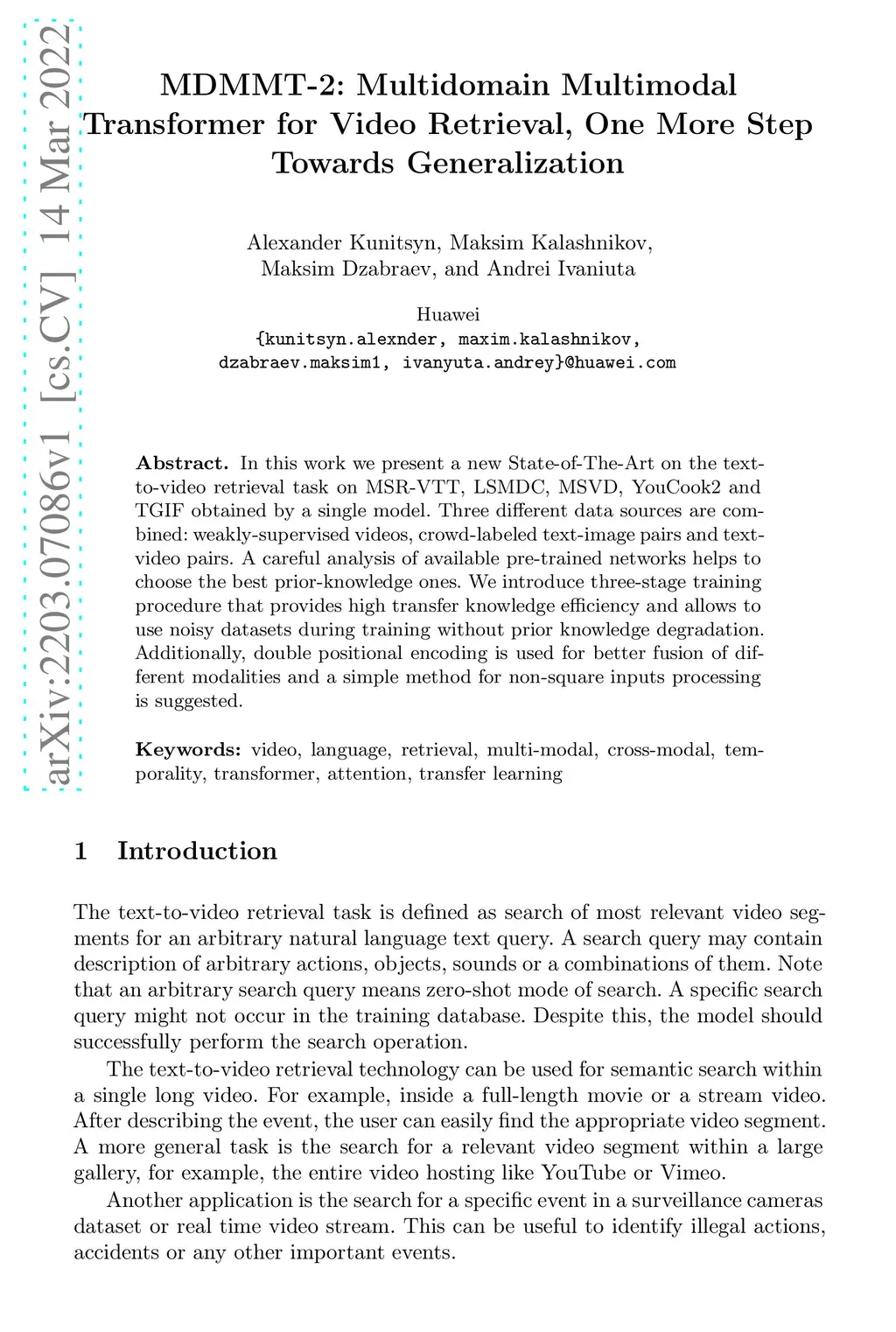MDMMT-2: Multidomain Multimodal Transformer for Video Retrieval, One