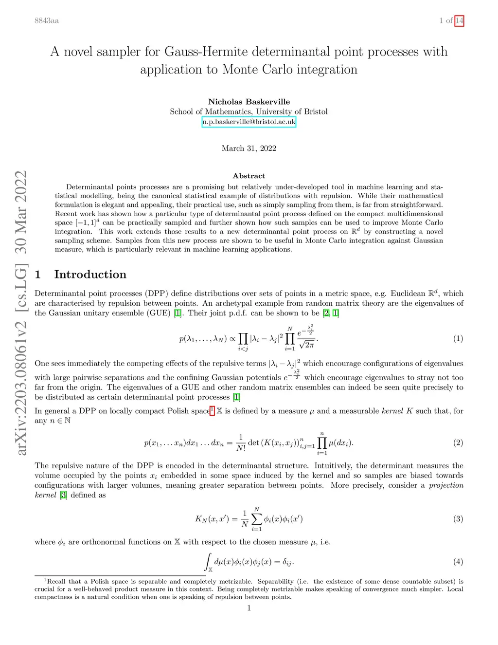 Determinantal points processes are a promising but relatively under-developed tool in machine learning and statistical modelling, being the canonical statistical example of distributions with repulsion. While their mathematical formulation is elegant and appealing, their practical use, such as simply sampling from them, is far from straightforward.Recent work has shown how a particular type of determinantal point process defined on the compact multidimensional space can be practically sampled and further shown how such samples can be used to improve Monte Carlo integration.This work extends those results to a new determinantal point process on by constructing a novel sampling scheme. Samples from this new process are shown to be useful in Monte Carlo integration against Gaussian measure, which is particularly relevant in machine learning applications.