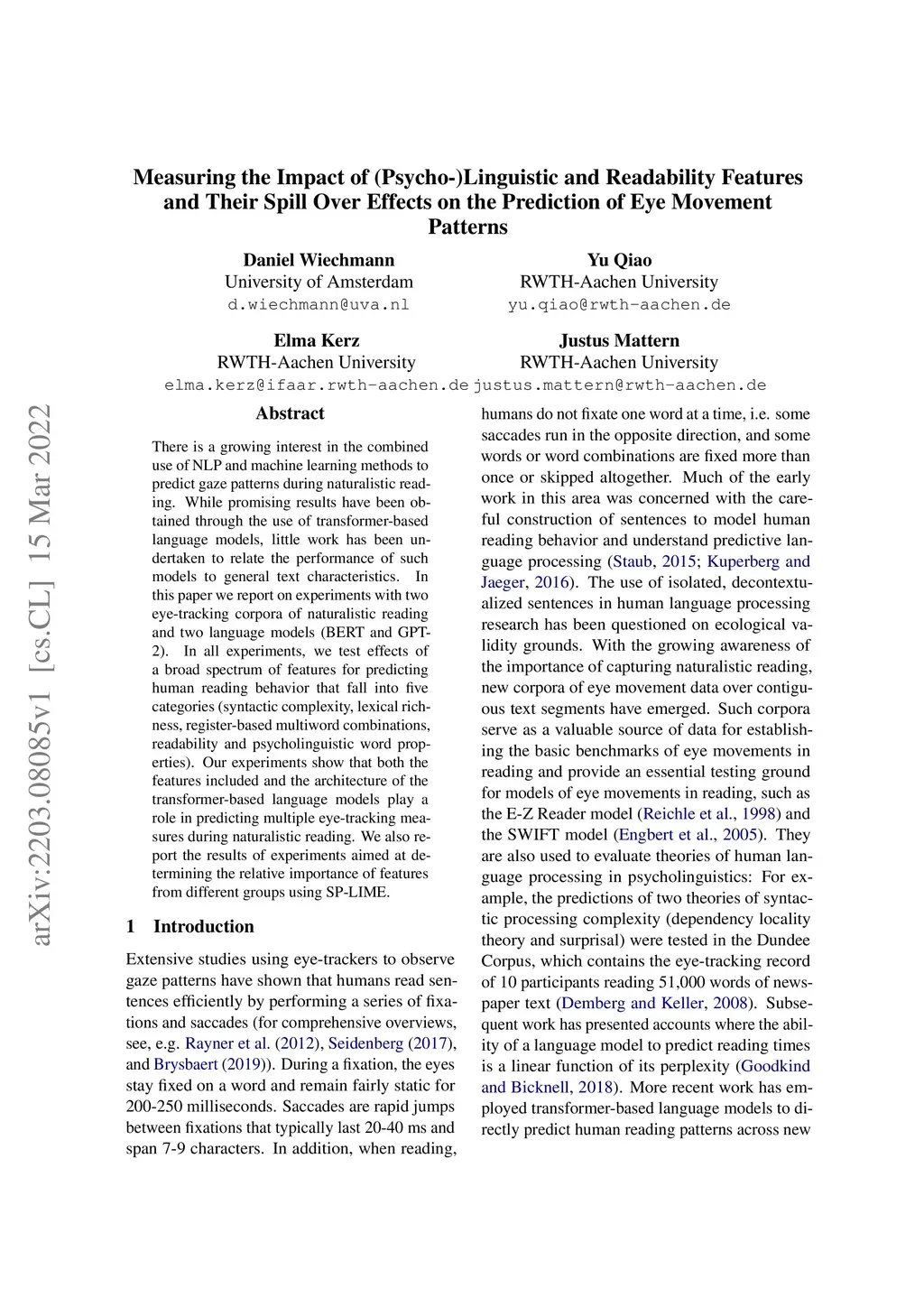Their Spill Over Effects on the Prediction of Eye Movement Patterns