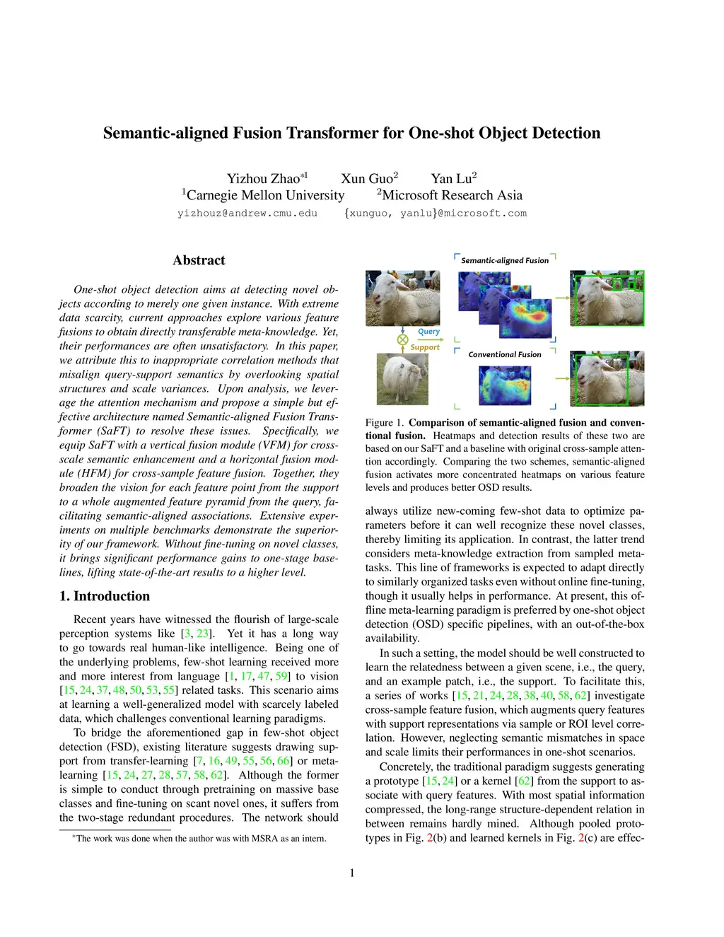 Semantic-aligned Fusion Transformer for One-shot Object Detection