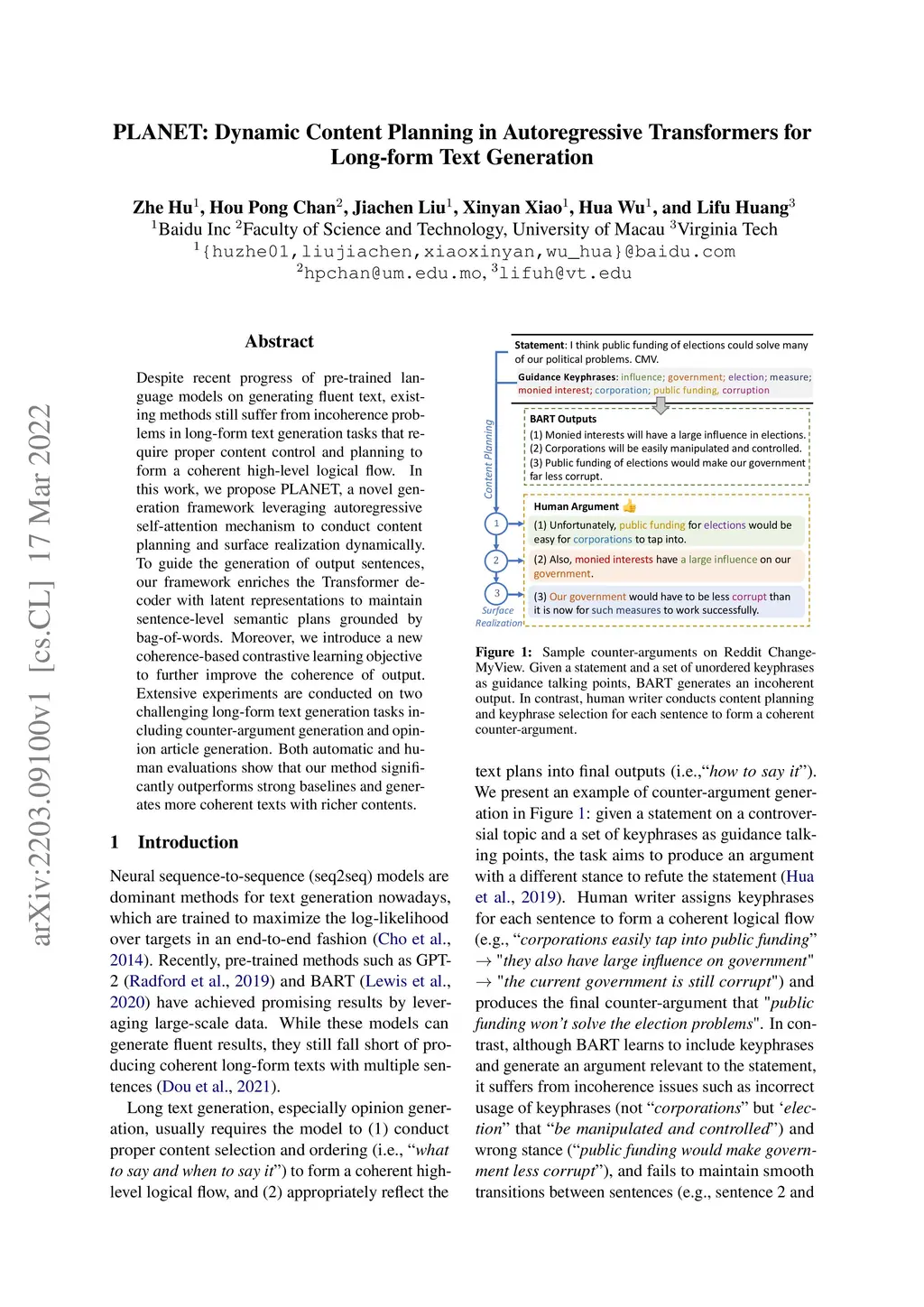PLANET: Dynamic Content Planning in Autoregressive Transformers for