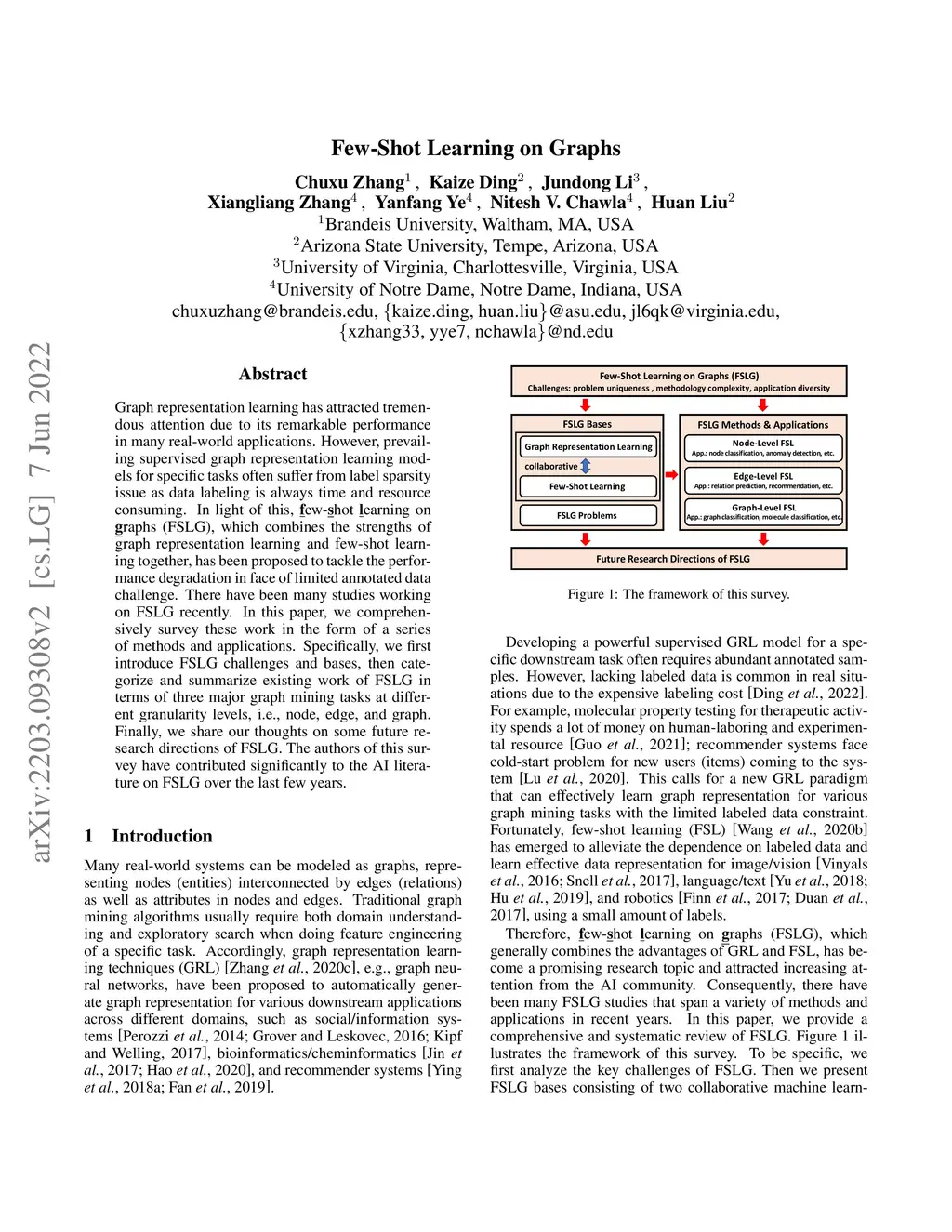 Graph representation learning has attracted tremendous attention due to its remarkable performance in many real-world applications. However, prevailing supervised graph representation learning models for specific tasks often suffer from label sparsity issue as data labeling is always time and resource consuming. In light of this, few-shot learning on graphs (FSLG), which combines the strengths of graph representation learning and few-shot learning together, has been proposed to tackle the performance degradation in face of limited annotated data challenge. There have been many studies working on FSLG recently. In this paper, we comprehensively survey these work in the form of a series of methods and applications. Specifically, we first introduce FSLG challenges and bases, then categorize and summarize existing work of FSLG in terms of three major graph mining tasks at different granularity levels, i.e., node, edge, and graph. Finally, we share our thoughts on some future research directions of FSLG. The authors of this survey have contributed significantly to the AI literature on FSLG over the last few years.