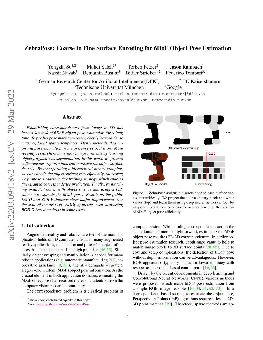 ZebraPose: Coarse to Fine Surface Encoding for 6DoF Object Pose