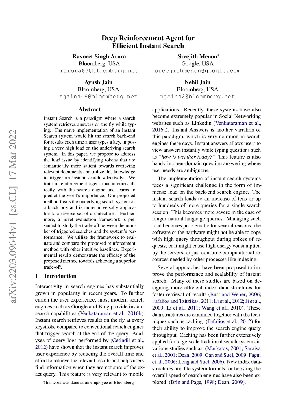 Deep Reinforcement Agent for Efficient Instant Search