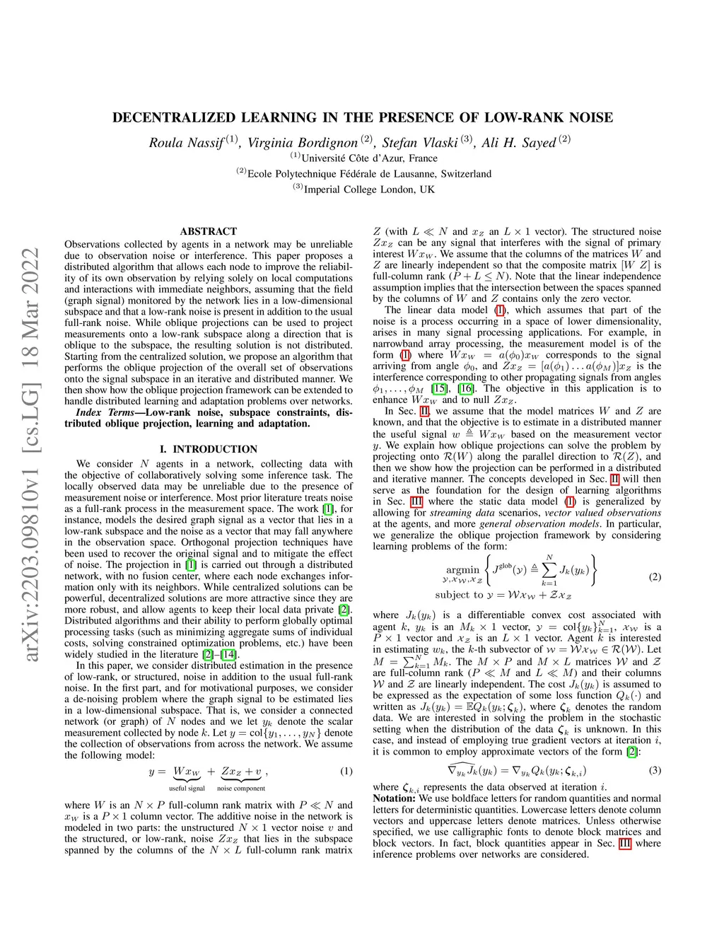 Dencentralized learning in the presence of low-rank noise