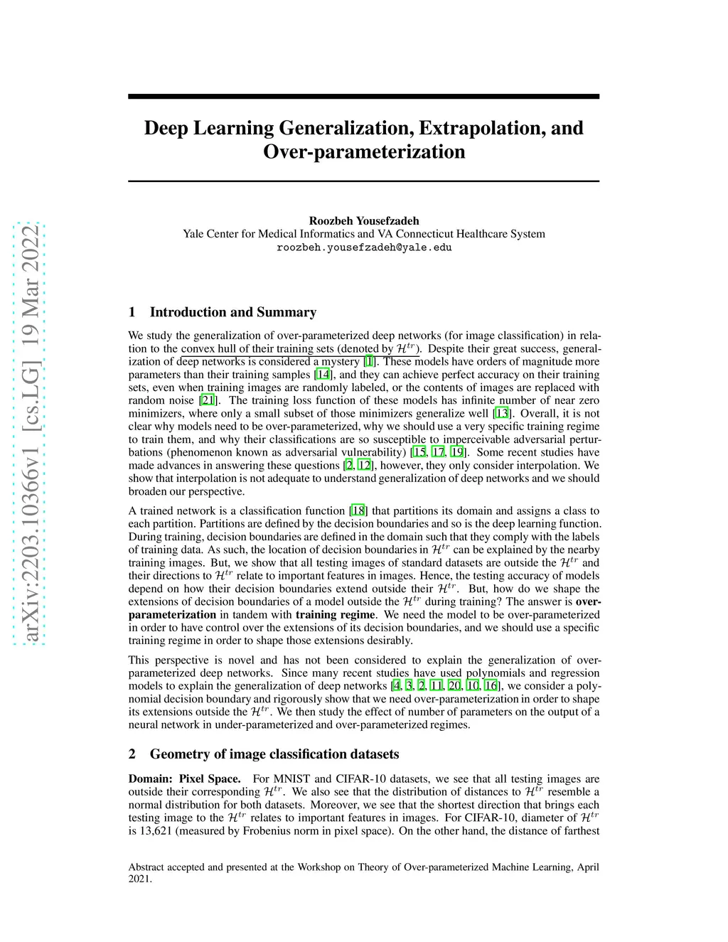 Deep Learning Generalization, Extrapolation, and Over-parameterization