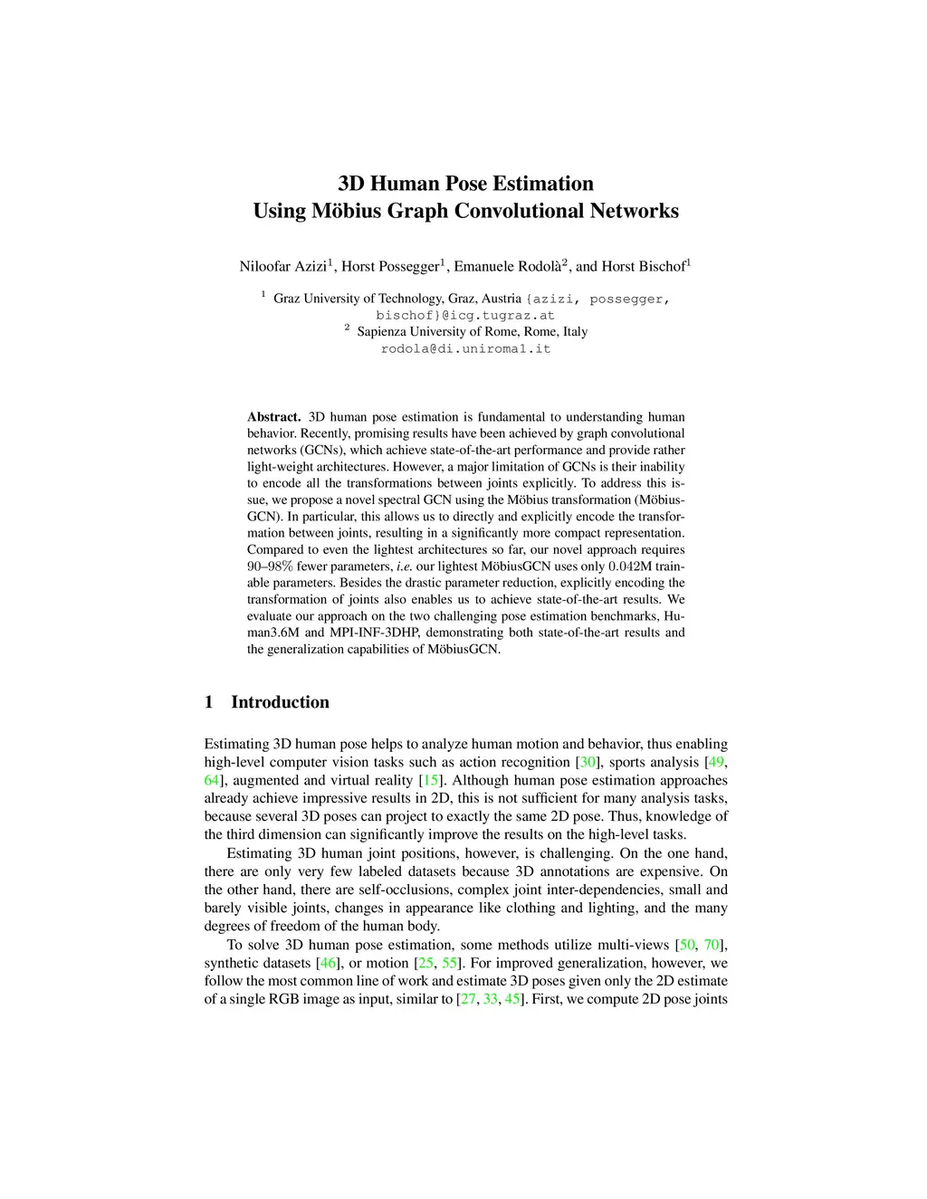 3D Human Pose Estimation Using Möbius Graph Convolutional Networks