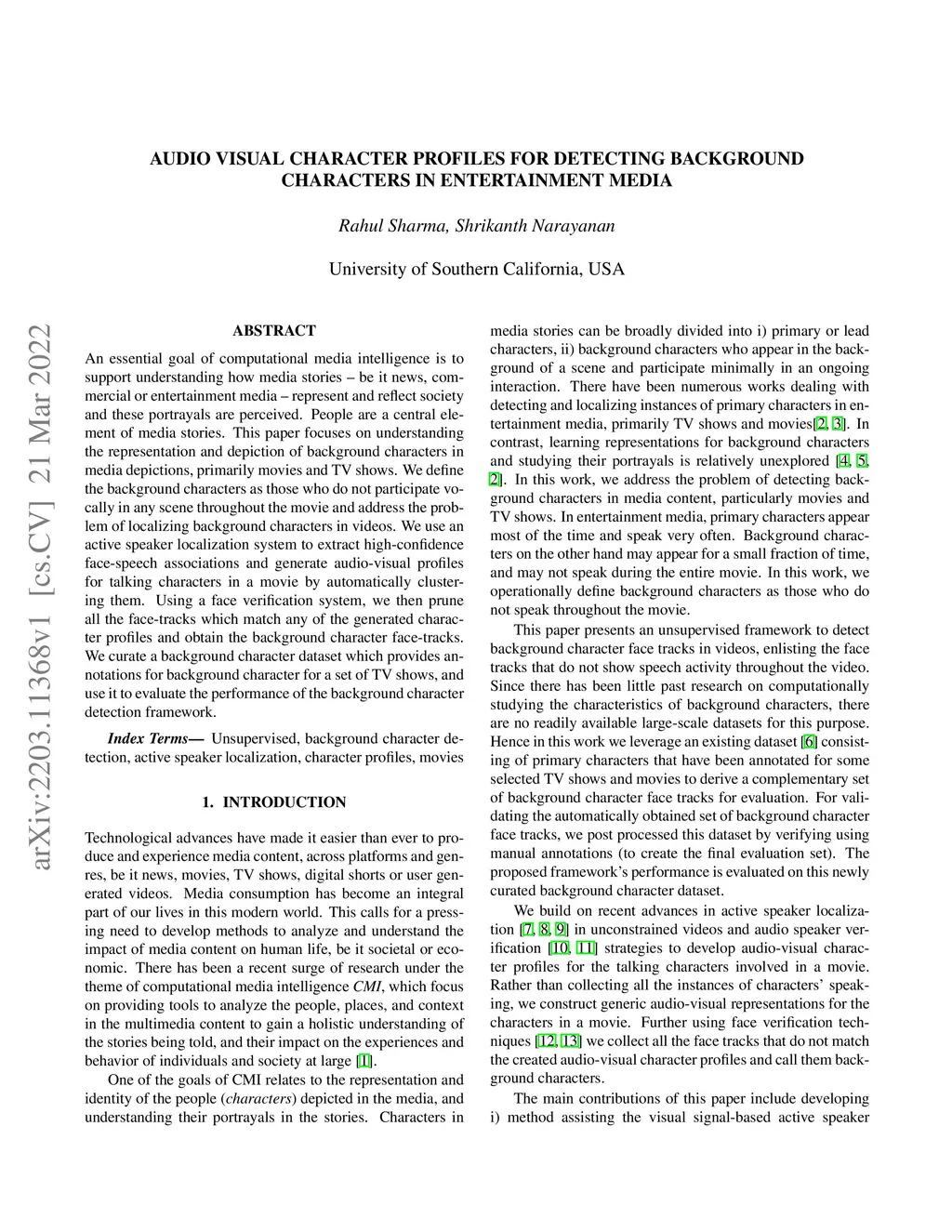An essential goal of computational media intelligence is to support understanding how media stories -- be it news, commercial or entertainment media -- represent and reflect society and these portrayals are perceived. People are a central element of media stories. This paper focuses on understanding the representation and depiction of background characters in media depictions, primarily movies and TV shows. We define the background characters as those who do not participate vocally in any scene throughout the movie and address the problem of localizing background characters in videos. We use an active speaker localization system to extract high-confidence face-speech associations and generate audio-visual profiles for talking characters in a movie by automatically clustering them. Using a face verification system, we then prune all the face-tracks which match any of the generated character profiles and obtain the background character face-tracks. We curate a background character dataset which provides annotations for background character for a set of TV shows, and use it to evaluate the performance of the background character detection framework.
