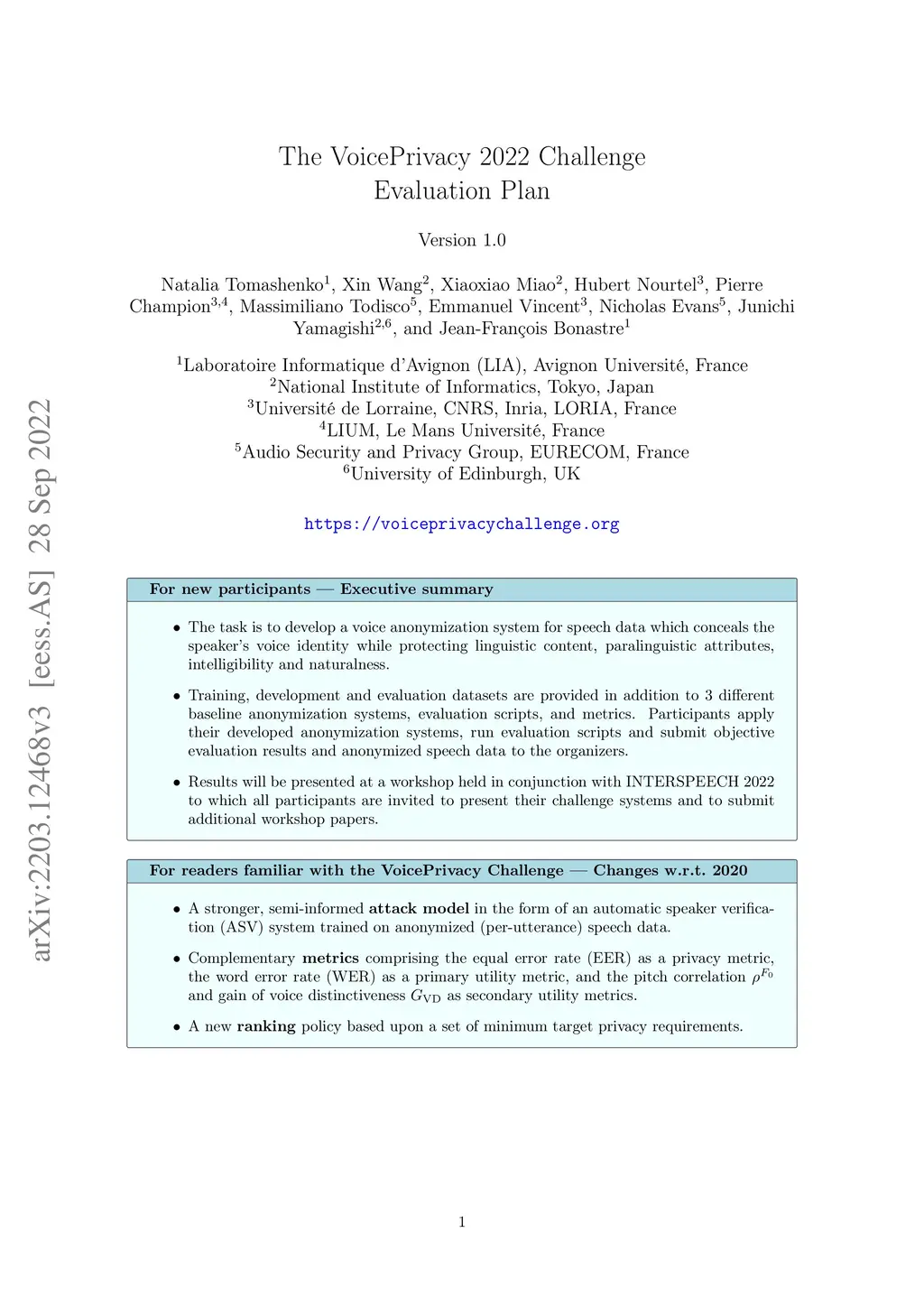 The VoicePrivacy 2022 Challenge Evaluation Plan
