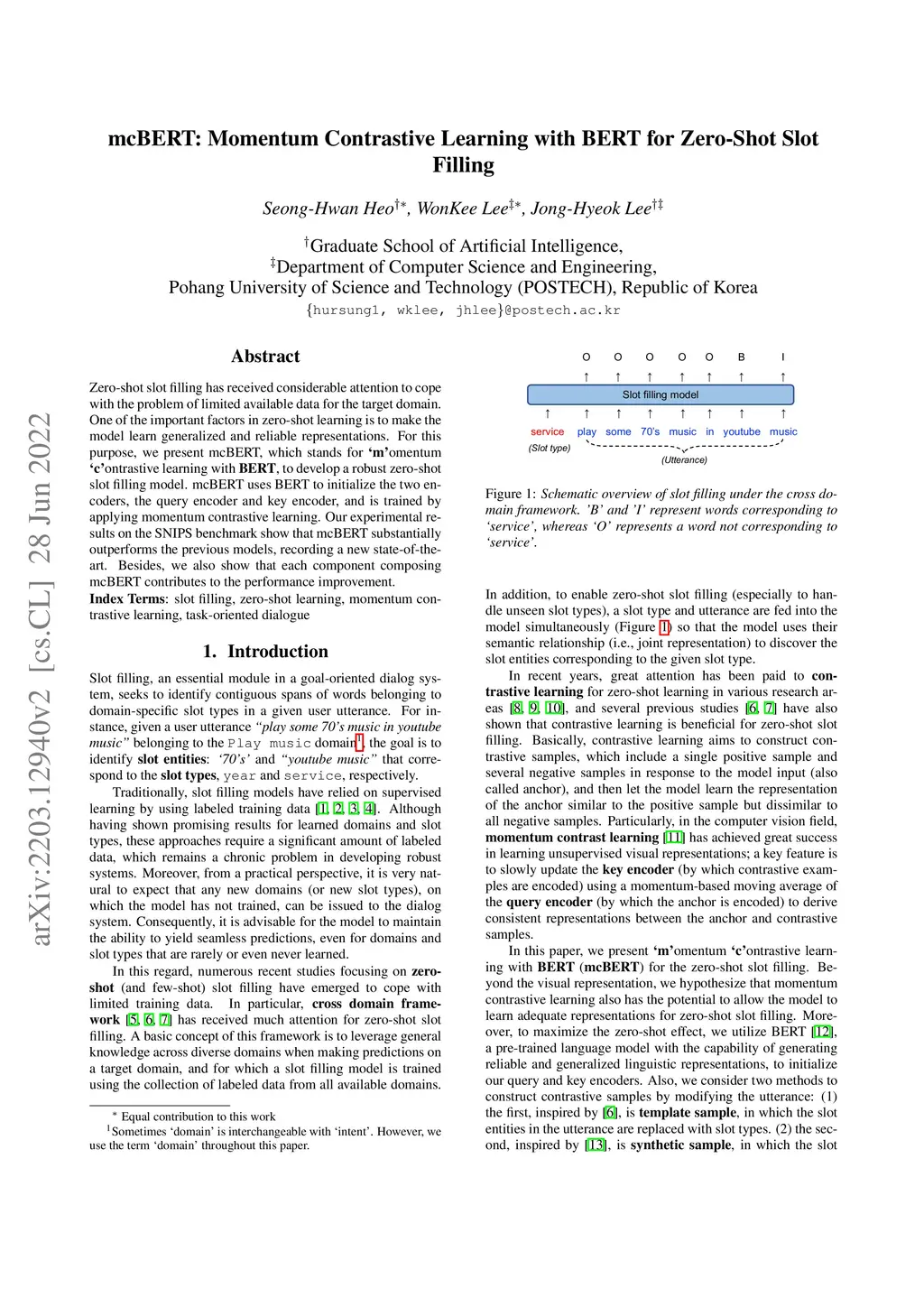 mcBERT: Momentum Contrastive Learning with BERT for Zero-Shot Slot