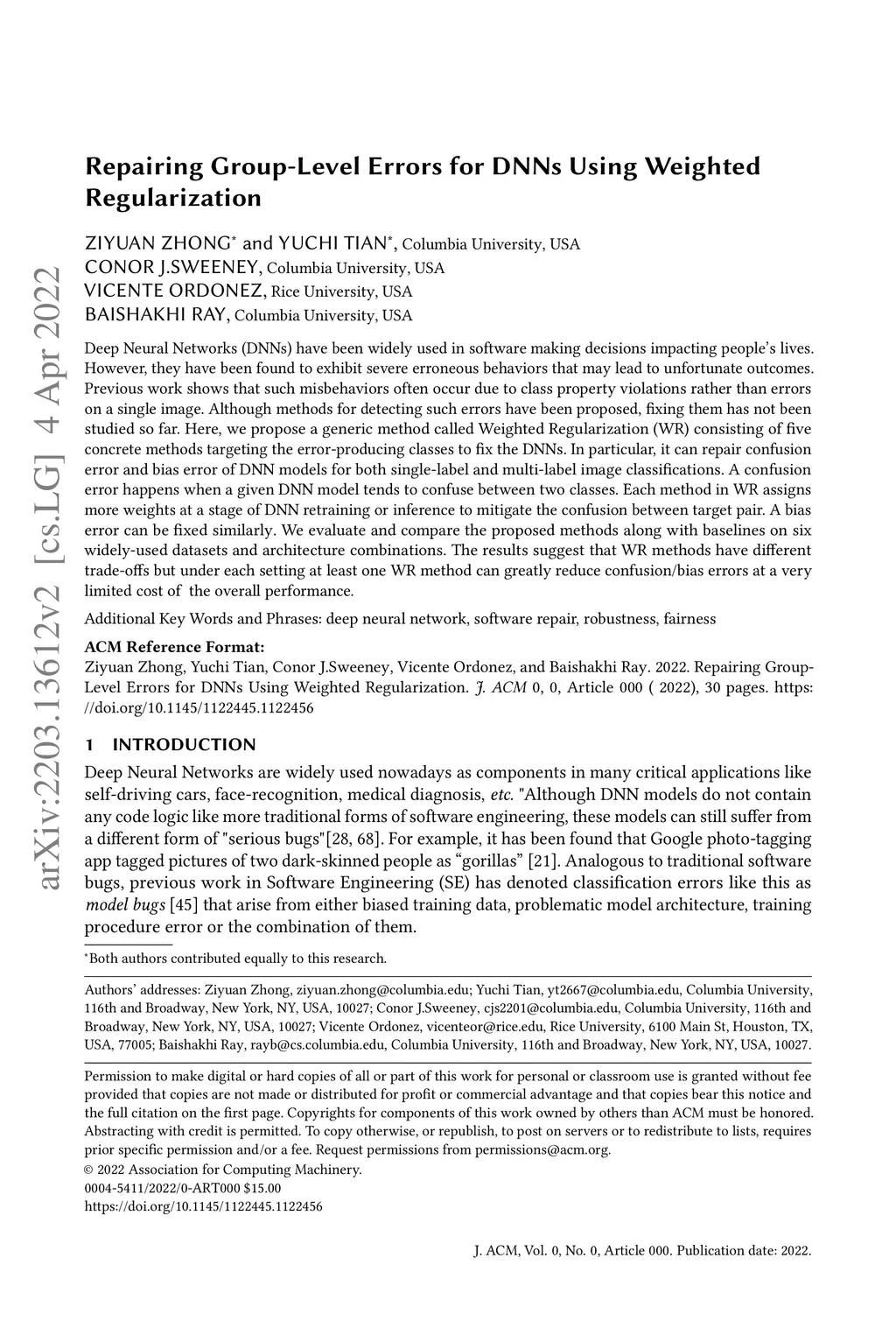 Repairing Group-Level Errors for DNNs Using Weighted Regularization