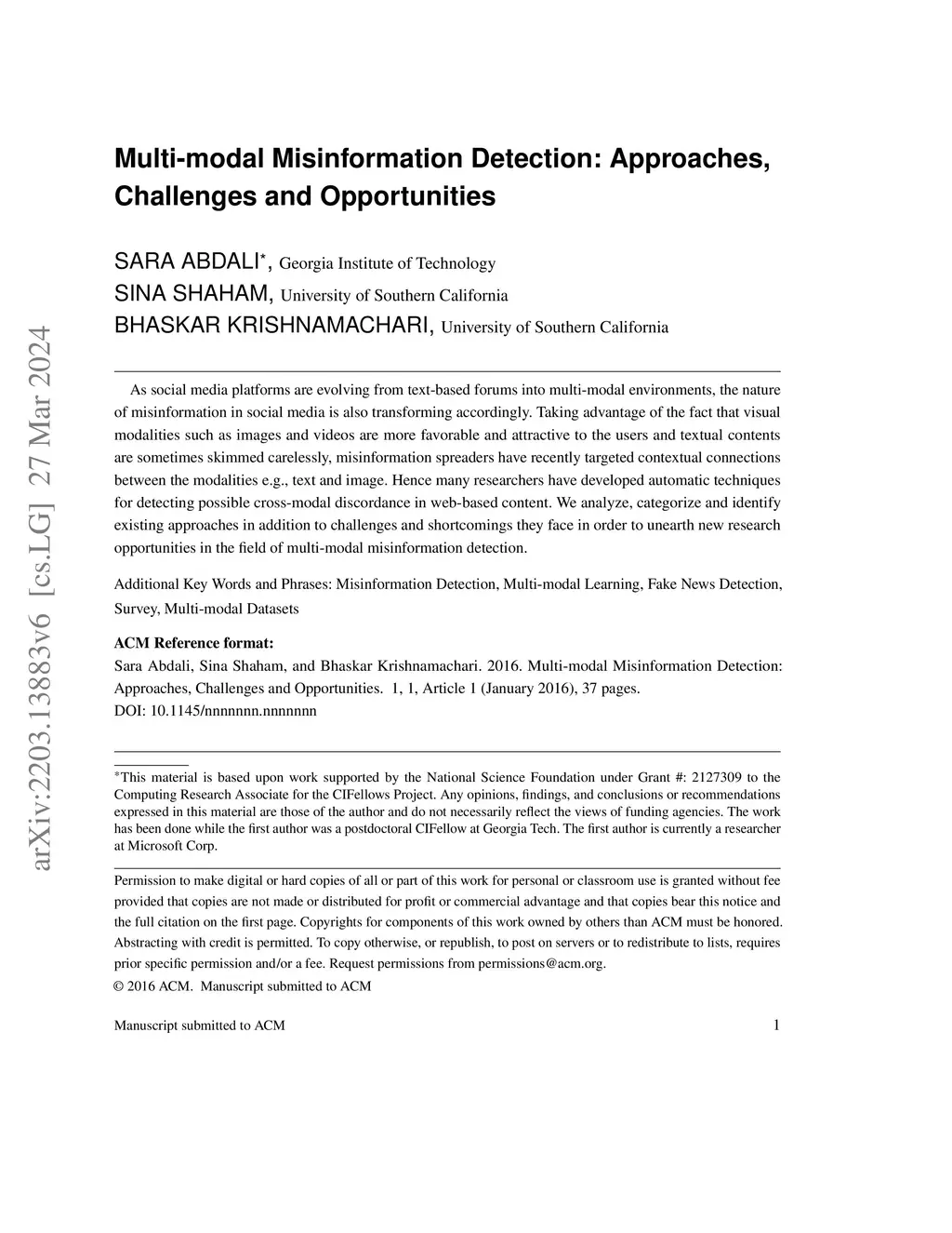 Multi-modal Misinformation Detection: Approaches, Challenges and Opportunities