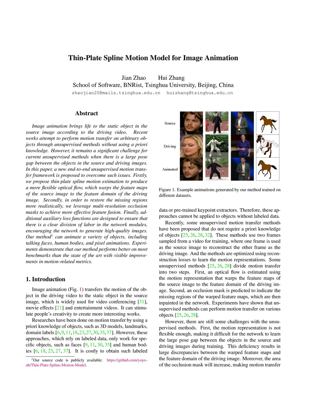 Thin-Plate Spline Motion Model for Image Animation