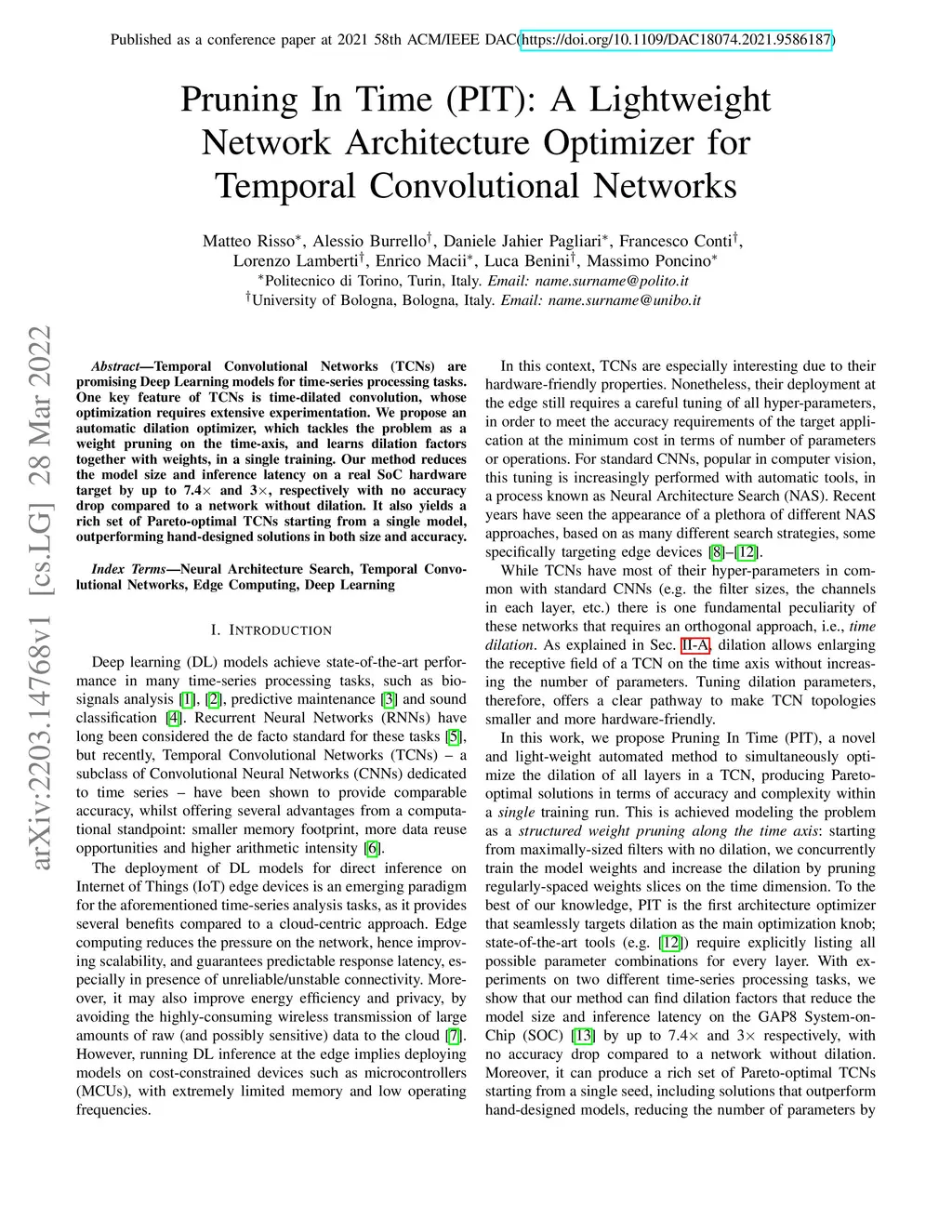 Pruning In Time (PIT): A Lightweight Network Architecture Optimizer for