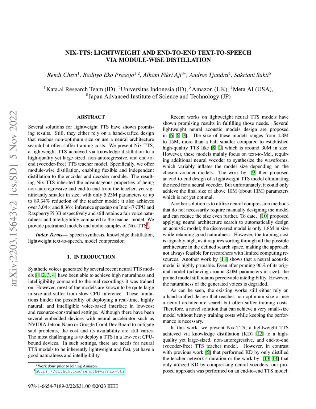 Nix-TTS: Lightweight and End-to-End Text-to-Speech via Module-wise