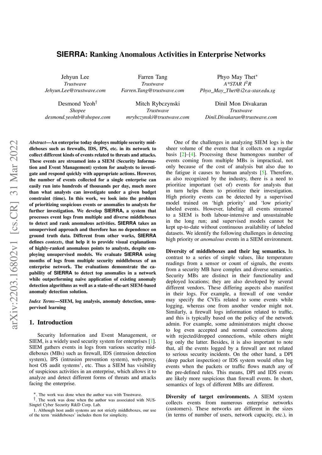 SIERRA: Ranking Anomalous Activities in Enterprise Networks