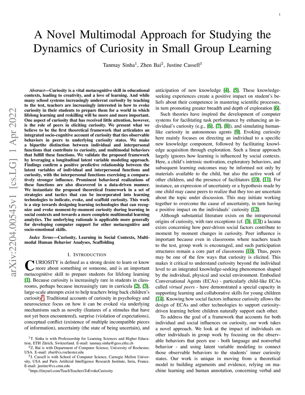 A Novel Multimodal Approach for Studying the Dynamics of Curiosity in
