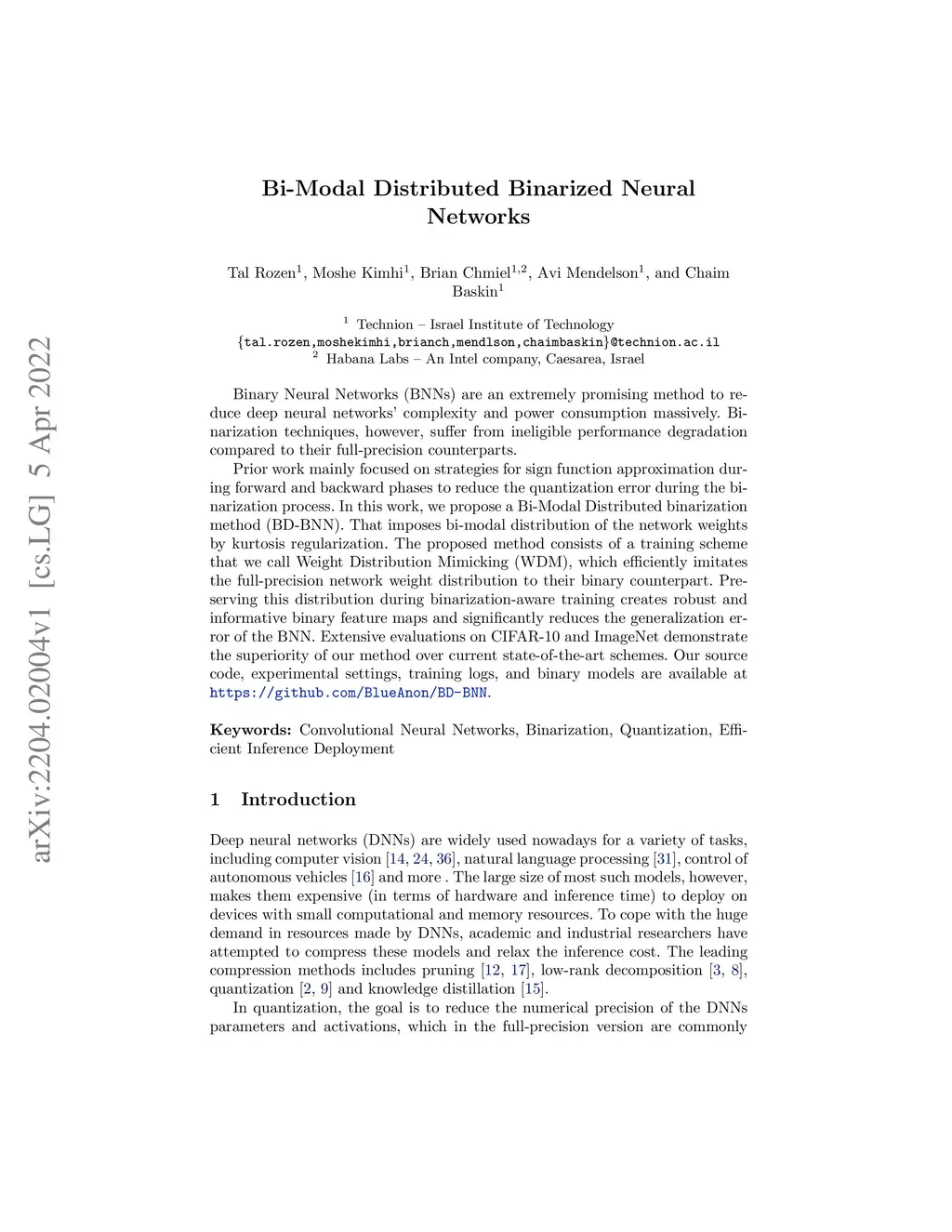 Binary Neural Networks (BNNs) are an extremely promising method to reduce deep neural networks' complexity and power consumption massively. Binarization techniques, however, suffer from ineligible performance degradation compared to their full-precision counterparts. Prior work mainly focused on strategies for sign function approximation during forward and backward phases to reduce the quantization error during the binarization process. In this work, we propose a Bi-Modal Distributed binarization method (\methodname{}). That imposes bi-modal distribution of the network weights by kurtosis regularization. The proposed method consists of a training scheme that we call Weight Distribution Mimicking (WDM), which efficiently imitates the full-precision network weight distribution to their binary counterpart. Preserving this distribution during binarization-aware training creates robust and informative binary feature maps and significantly reduces the generalization error of the BNN. Extensive evaluations on CIFAR-10 and ImageNet demonstrate the superiority of our method over current state-of-the-art schemes. Our source code, experimental settings, training logs, and binary models are available at \url{https://github.com/BlueAnon/BD-BNN}.