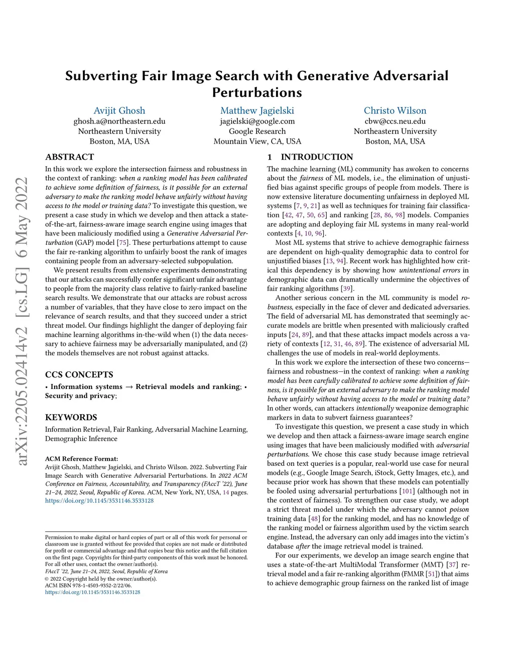 Subverting Fair Image Search with Generative Adversarial Perturbations