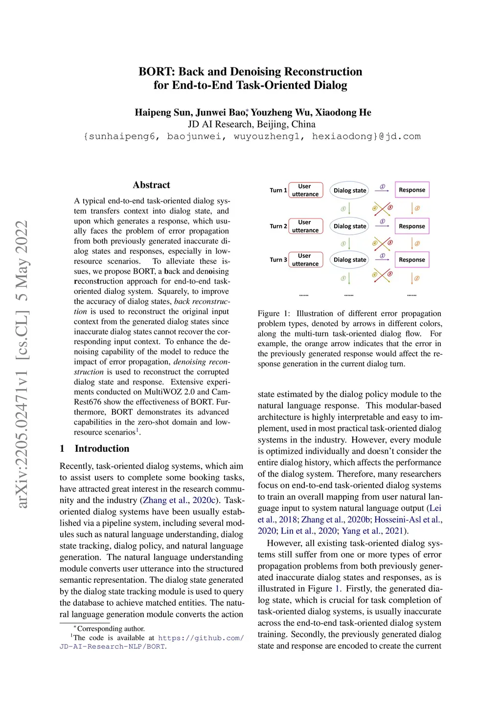 BORT: Back and Denoising Reconstruction for End-to-End Task-Oriented