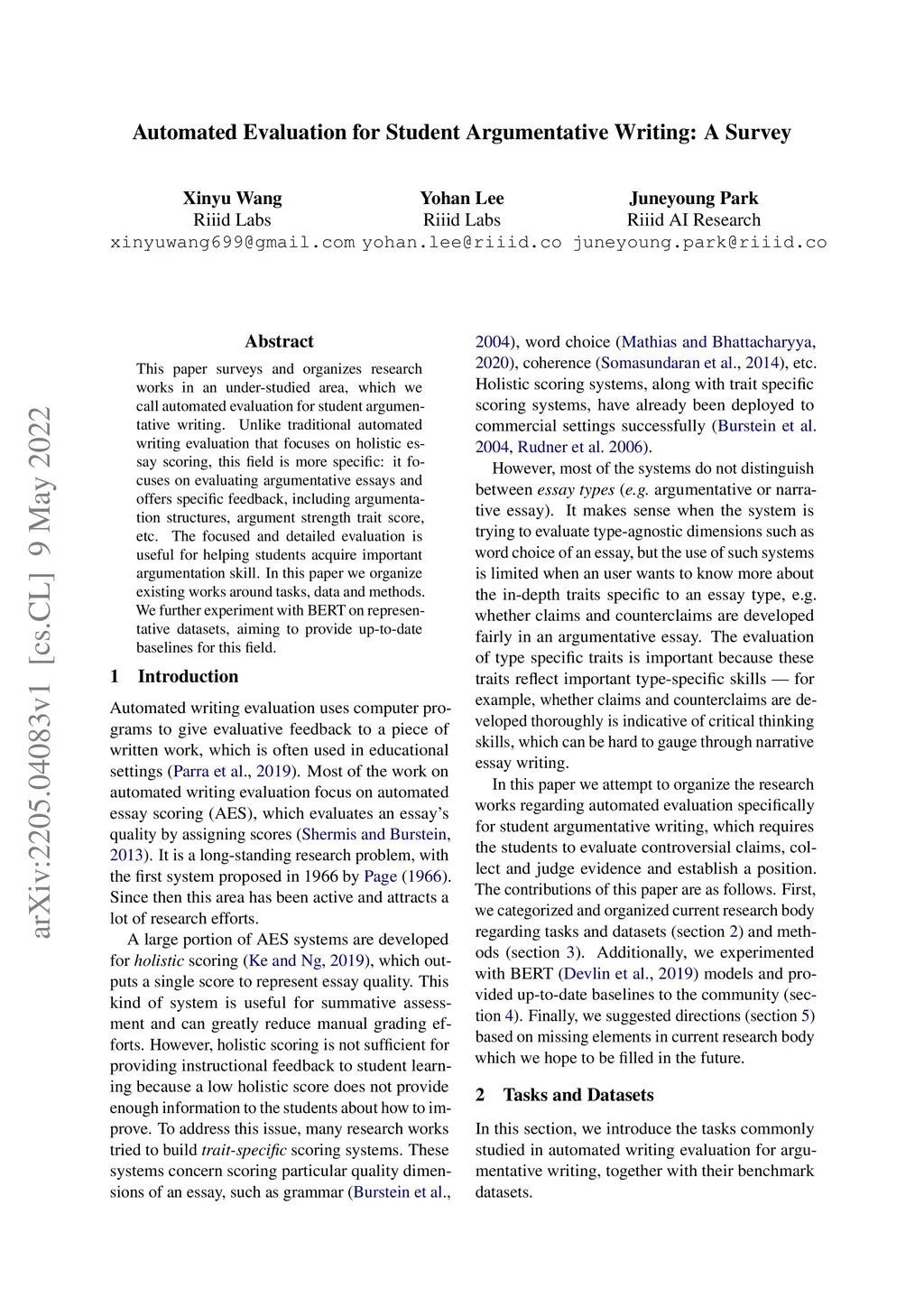 Automated Evaluation for Student Argumentative Writing: A Survey
