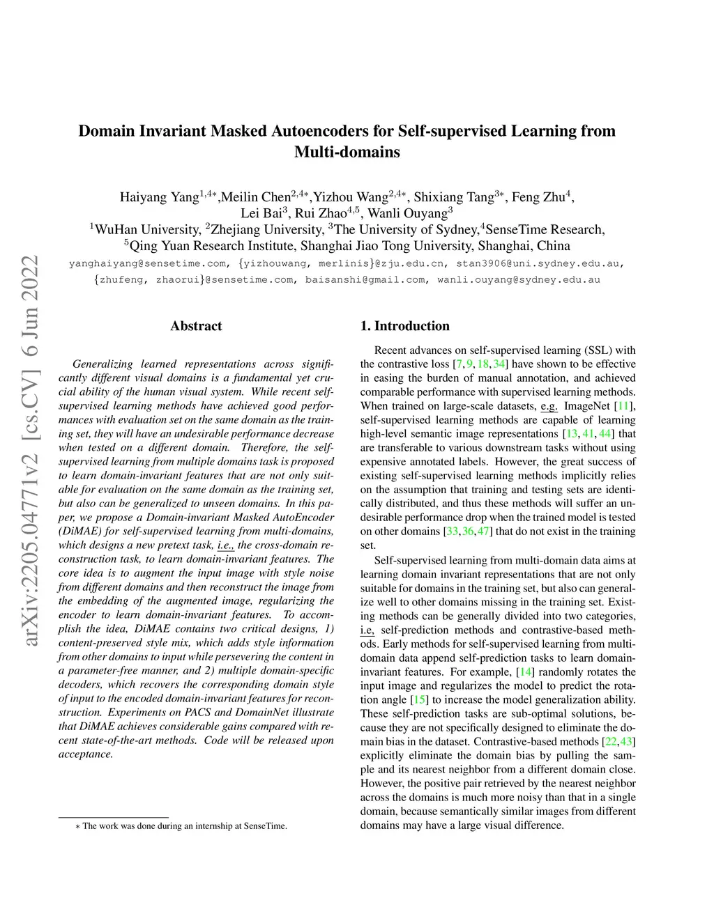 Domain Invariant Masked Autoencoders for Self-supervised Learning from