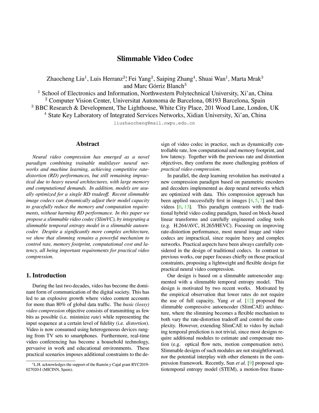 Neural video compression has emerged as a novel paradigm combining trainable multilayer neural networks and machine learning, achieving competitive rate-distortion (RD) performances, but still remaining impractical due to heavy neural architectures, with large memory and computational demands. In addition, models are usually optimized for a single RD tradeoff. Recent slimmable image codecs can dynamically adjust their model capacity to gracefully reduce the memory and computation requirements, without harming RD performance. In this paper we propose a slimmable video codec (SlimVC), by integrating a slimmable temporal entropy model in a slimmable autoencoder. Despite a significantly more complex architecture, we show that slimming remains a powerful mechanism to control rate, memory footprint, computational cost and latency, all being important requirements for practical video compression.