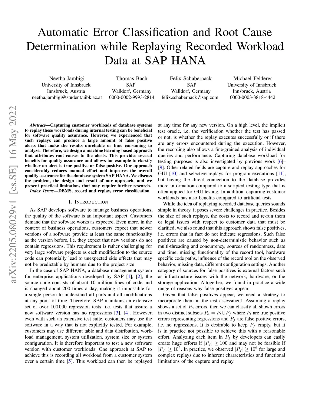 Capturing customer workloads of database systems to replay these workloads during internal testing can be beneficial for software quality assurance. However, we experienced that such replays can produce a large amount of false positive alerts that make the results unreliable or time consuming to analyze. Therefore, we design a machine learning based approach that attributes root causes to the alerts. This provides several benefits for quality assurance and allows for example to classify whether an alert is true positive or false positive. Our approach considerably reduces manual effort and improves the overall quality assurance for the database system SAP HANA. We discuss the problem, the design and result of our approach, and we present practical limitations that may require further research.