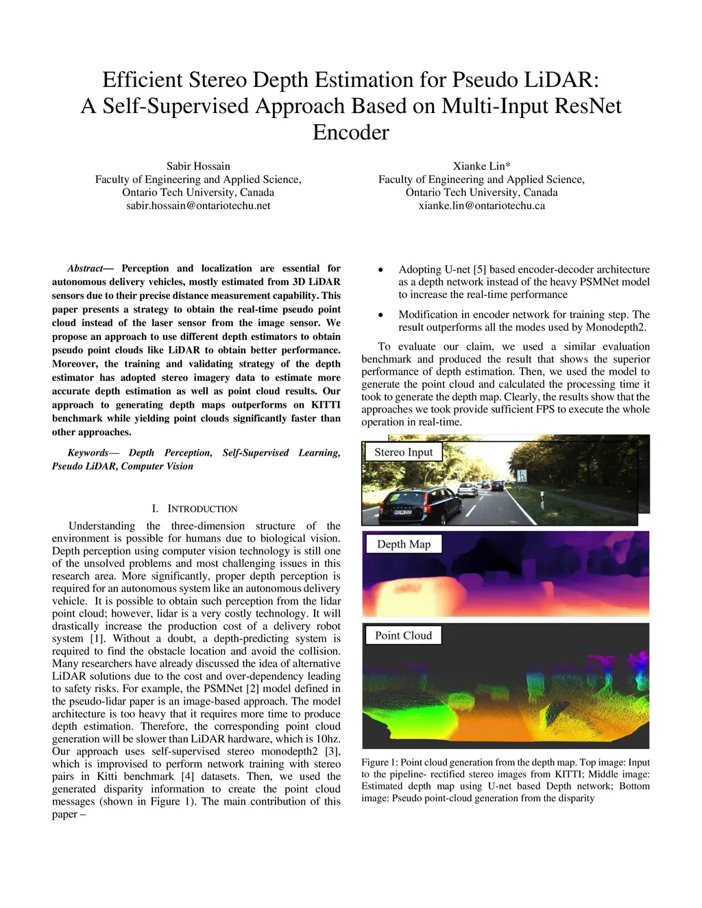Perception and localization are essential for autonomous delivery vehicles, mostly estimated from 3D LiDAR sensors due to their precise distance measurement capability. This paper presents a strategy to obtain the real-time pseudo point cloud instead of the laser sensor from the image sensor. We propose an approach to use different depth estimators to obtain pseudo point clouds like LiDAR to obtain better performance. Moreover, the training and validating strategy of the depth estimator has adopted stereo imagery data to estimate more accurate depth estimation as well as point cloud results. Our approach to generating depth maps outperforms on KITTI benchmark while yielding point clouds significantly faster than other approaches.